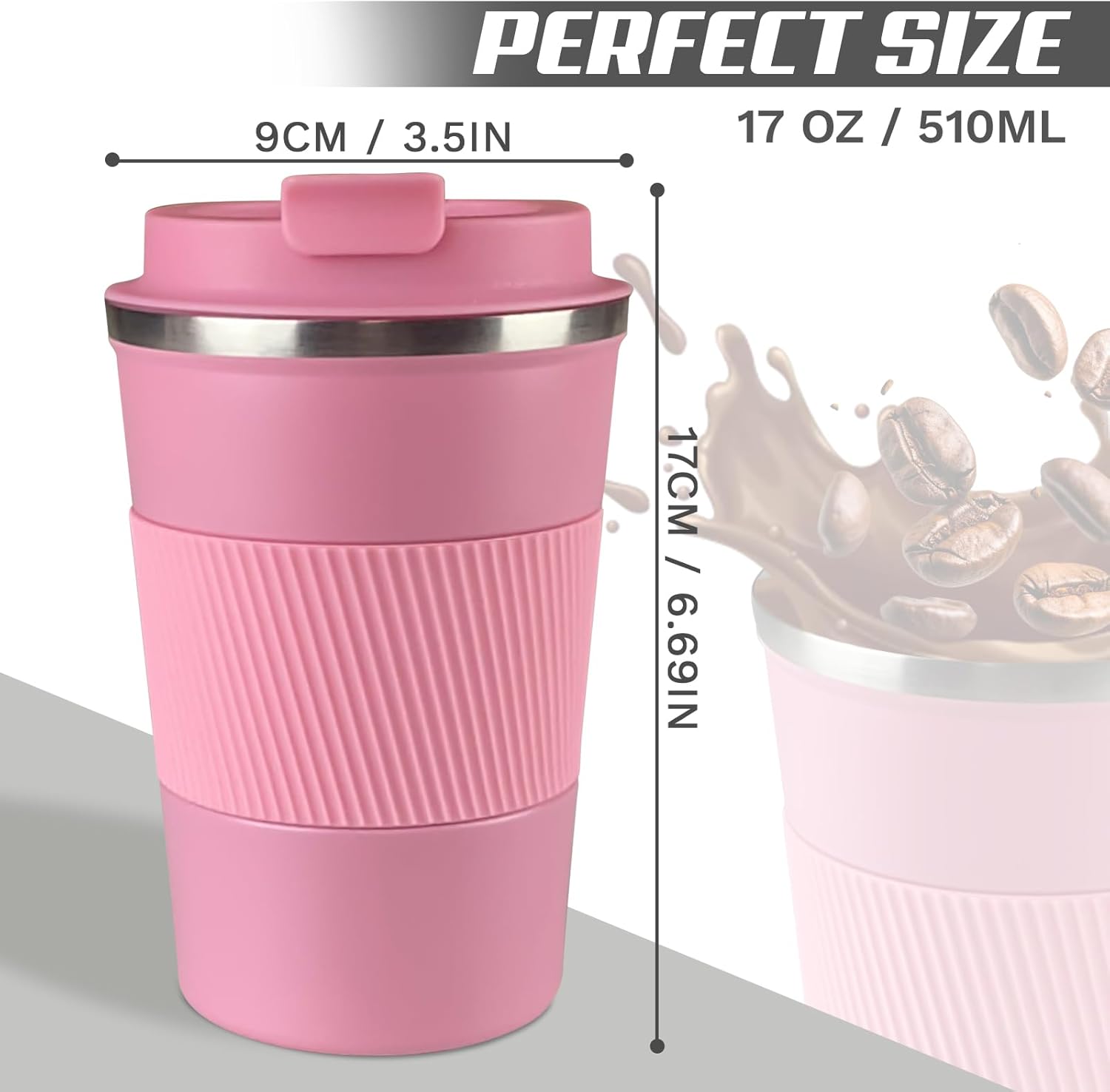 Vacuum-Insulated Stainless Steel Travel Coffee Mug, Leak-Proof Reusable Coffee Cup with Lid - Keep Hot & Cold Drinks for Hours, Durable Thermos Tumbler for Men & Women (3rd-Pink, 17OZ)