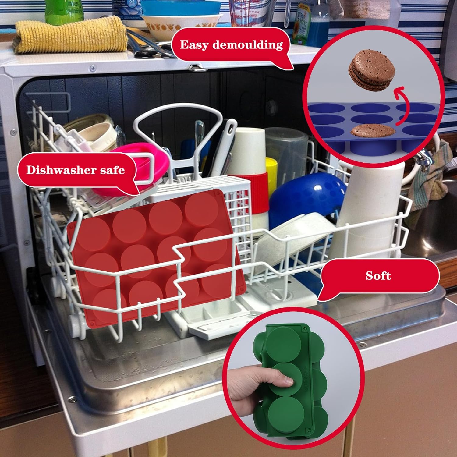 Round Chocolate Cookie Silicone Molds, New Size 12-Cavity Cylinder Chocolate Cover Cookie Silicone Molds for Candy Mini Cakes Jelly Baking (Green Red Blue)
