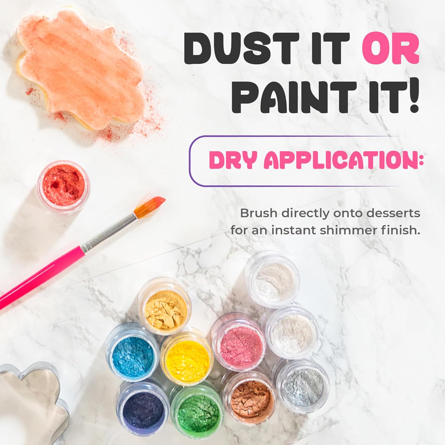 - Pearl Luster Dusts for Shimmering - Enhance your creations with high-gloss sheen colors of pearl luster dusts, adding a shimmer reminiscent of pearls to cake pops and various confections. Ideal for decorating cakes for weddings, anniversaries, birthdays, graduations, and more, the shimmer dust powder imparts a sophisticated metallic look.