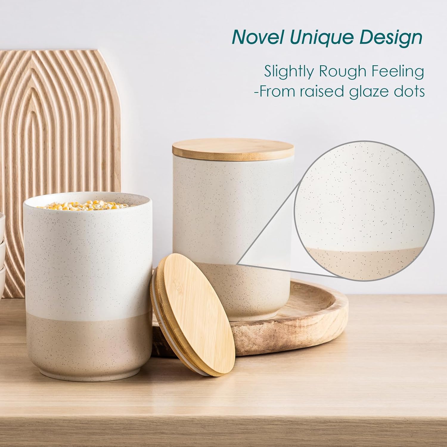 vancasso Sabine Large Ceramic Canister Set with Airtight Wood Lids - 2-Piece Kitchen Food Storage Jars for Flour, Sugar, Coffee & Tea (74 oz Each) - Big Capacity Countertop Jars