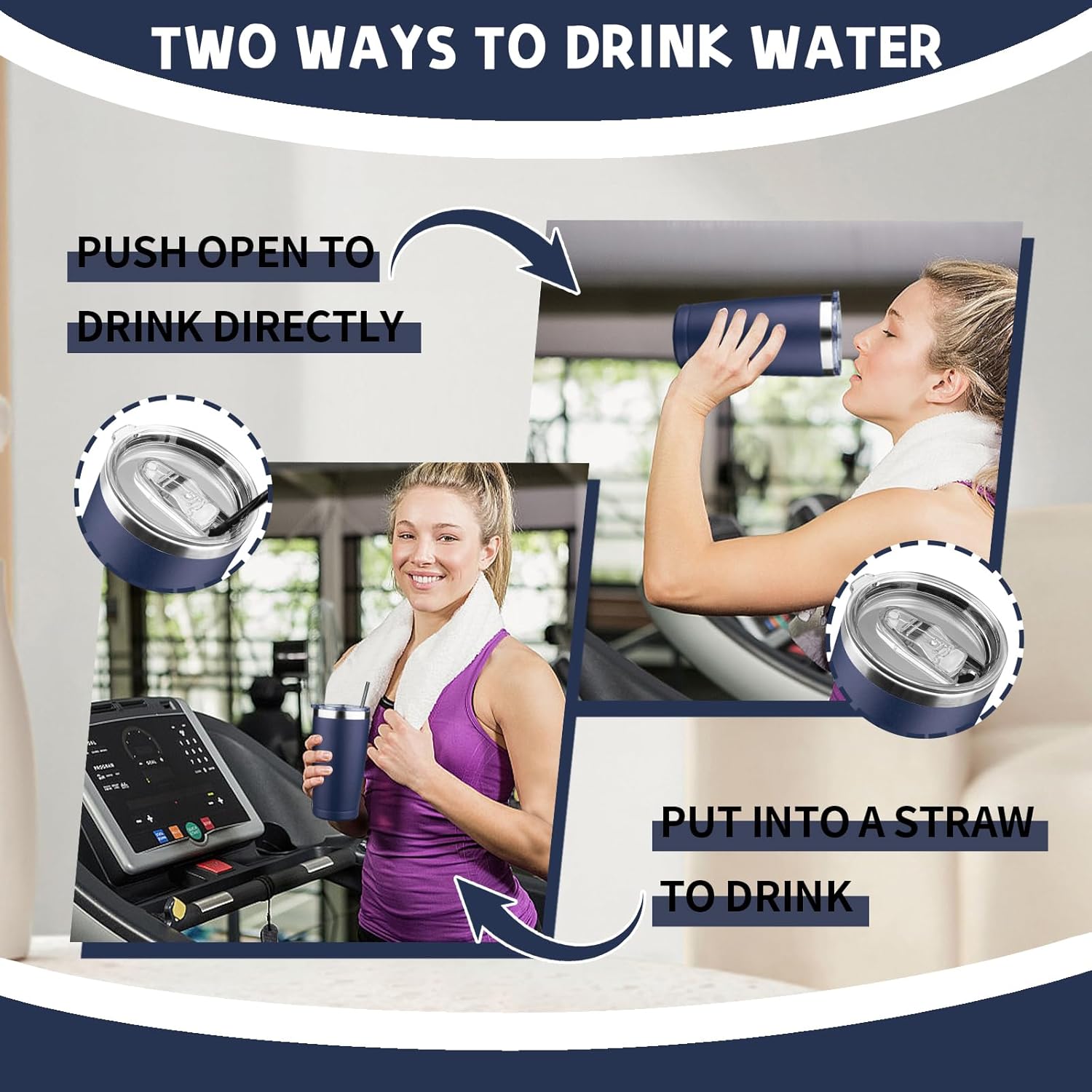 20 oz Tumbler with Lids and Straws, Stainless Steel Insulated Coffee Tumbler, Double Wall Vacuum Insulated Travel Mug Cup, Leakproof Thermal Coffee Cup for Hot and Cold Drinks (navy blue)