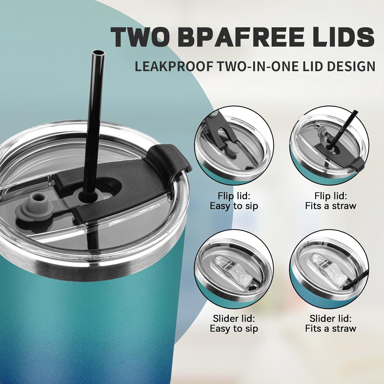 - ✅【𝗦𝘂𝗽𝗲𝗿𝗶𝗼𝗿 𝗟𝗲𝗮𝗸-𝗽𝗿𝗼𝗼𝗳 𝗣𝗲𝗿𝗳𝗼𝗿𝗺𝗮𝗻𝗰𝗲】The travel mugs insulated for hot and cold features a unique 3-in-1 lid design that lets you sip, drink through a straw, or enjoy the wide-mouth design. The silicone seal on the top of the lid is so tight that it won't leak even if shaken or accidentally poured. When sipping, no liquid will leak from the lid except through the sipping hole. Also, the sealed lid further enhances heat retention.