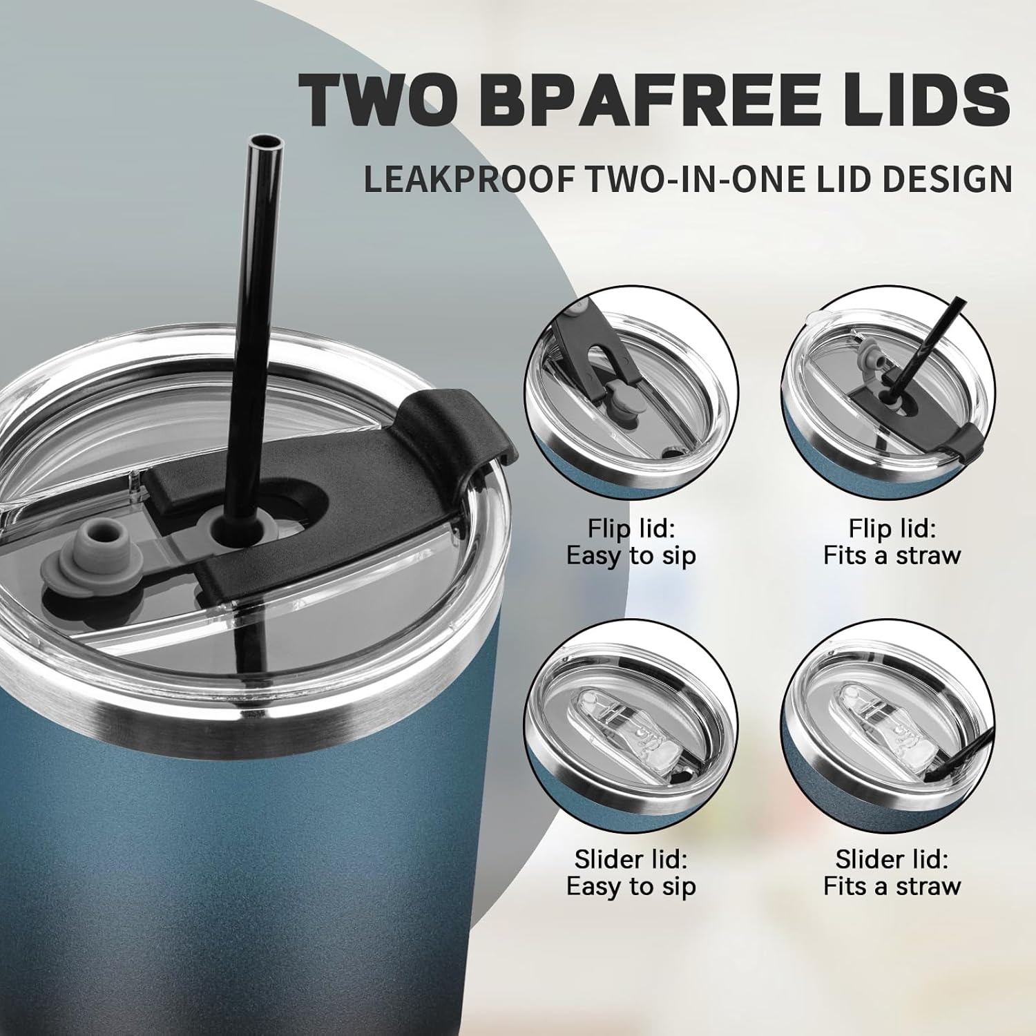 - ✅【𝗦𝘂𝗽𝗲𝗿𝗶𝗼𝗿 𝗟𝗲𝗮𝗸-𝗽𝗿𝗼𝗼𝗳 𝗣𝗲𝗿𝗳𝗼𝗿𝗺𝗮𝗻𝗰𝗲】The travel mugs insulated for hot and cold features a unique 3-in-1 lid design that lets you sip, drink through a straw, or enjoy the wide-mouth design. The silicone seal on the top of the lid is so tight that it won't leak even if shaken or accidentally poured. When sipping, no liquid will leak from the lid except through the sipping hole. Also, the sealed lid further enhances heat retention.