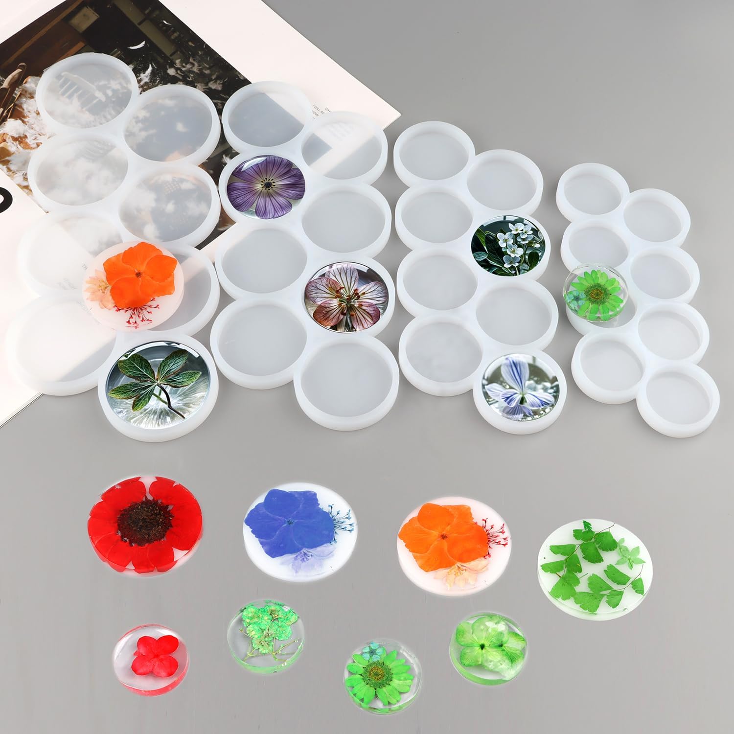 4Pcs Set 32-Cavity Resin Circle Molds, Flat Round Keychain Silicone Mold, Magnet Mold, Earrings Mold, Pendant Silicone Mold for Resin(2in, 1.75in, 1.5in, 1.25in)