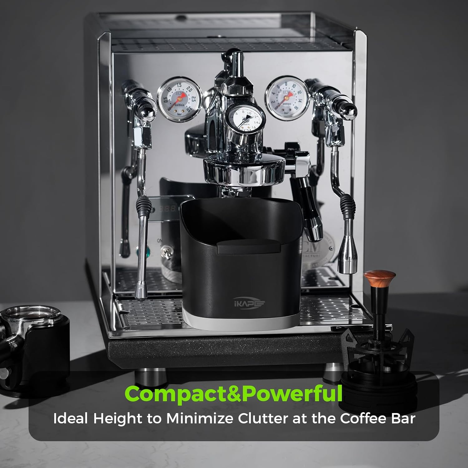 IKAPE Espresso Knock Box for Coffee Grounds, Barista Tool Enhanced for Better Manipulation - Black Espresso Machine Coffee Puck Disposal Box