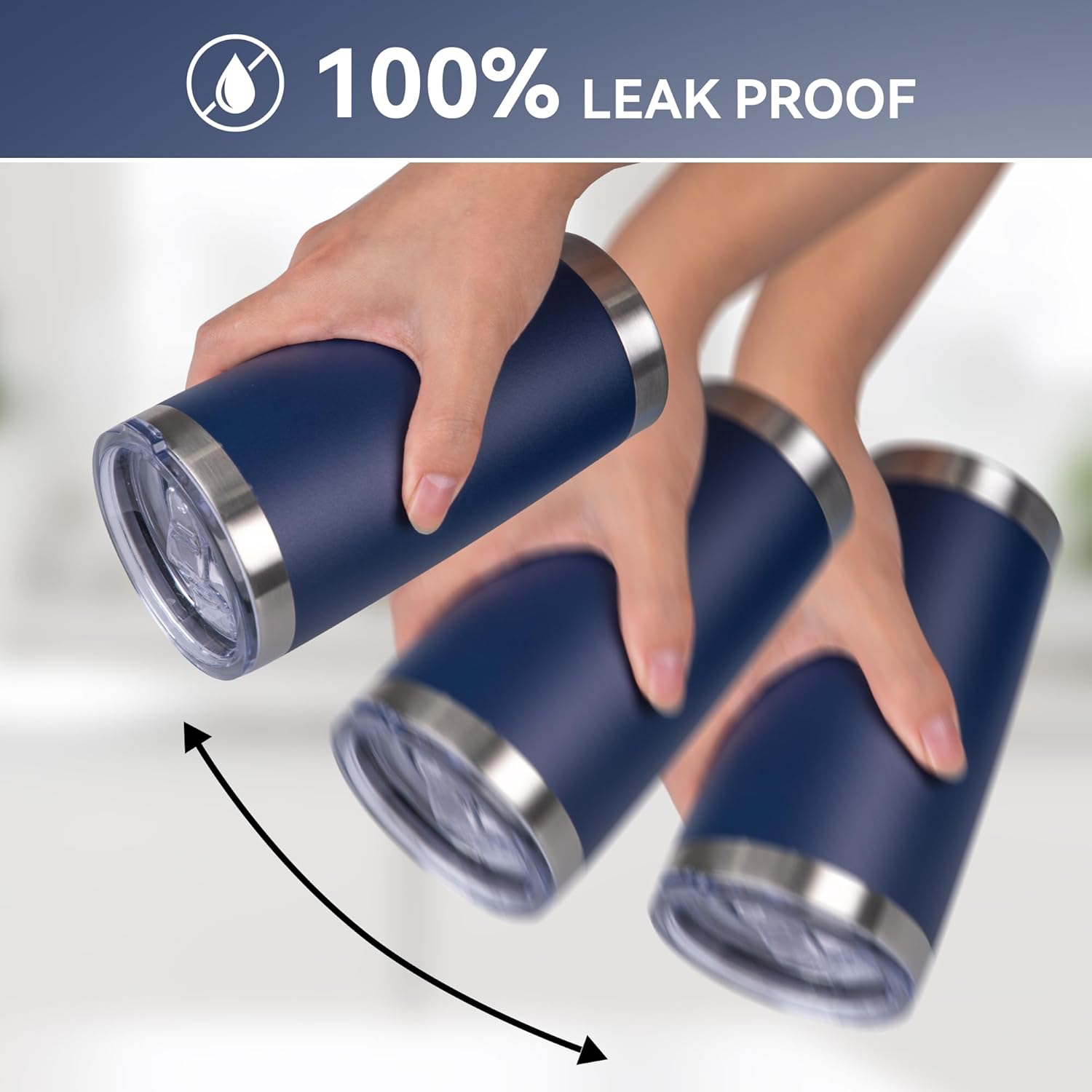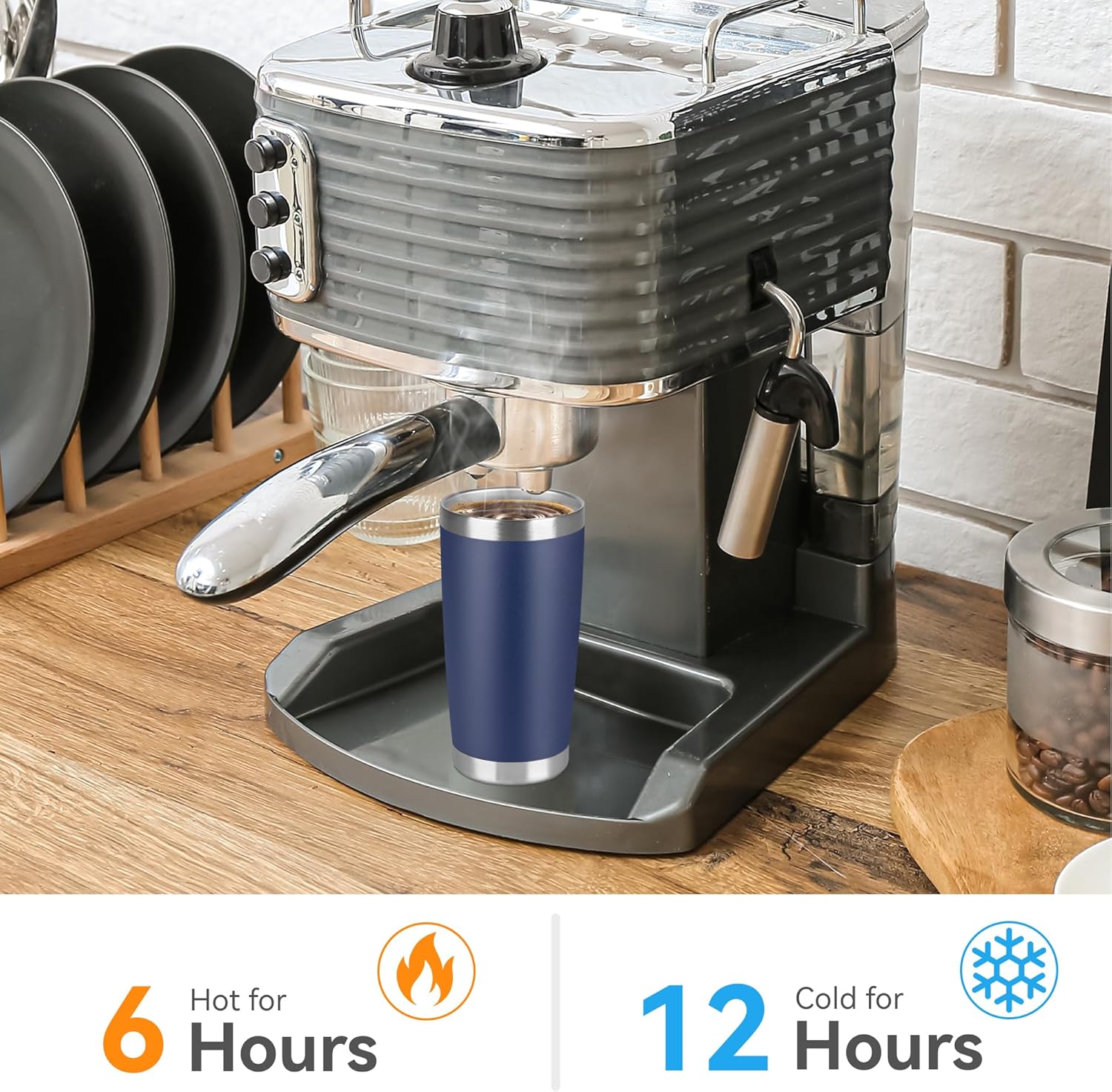 20 oz Tumbler Stainless Steel Tumblers Bulk with Lid Double Wall Insulated Coffee Tumbler Cups for Hot & Cold Drinks Powder Coated Travel Coffee Tumbler Mug Metal (Navy Blue, 1 pack)