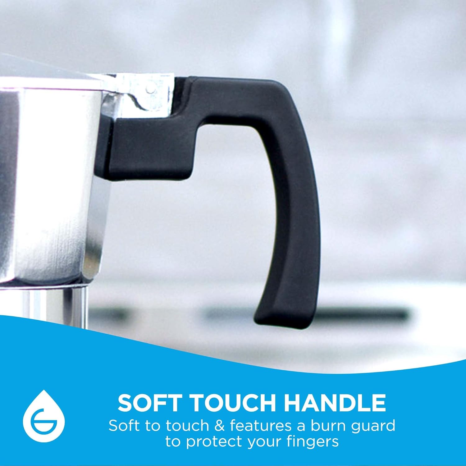 - PREMIUM QUALITY: MILANO is available in a variety of espresso cup sizes, 1 cup, 3 cup, 6 cup, 9 cup, and 12 cup - MILANO is made from food grade anodized aluminum, has a large soft touch handle with a burn guard for your finger, and the safety valve is Made in Italy, keeping you safe from high pressure buildup.