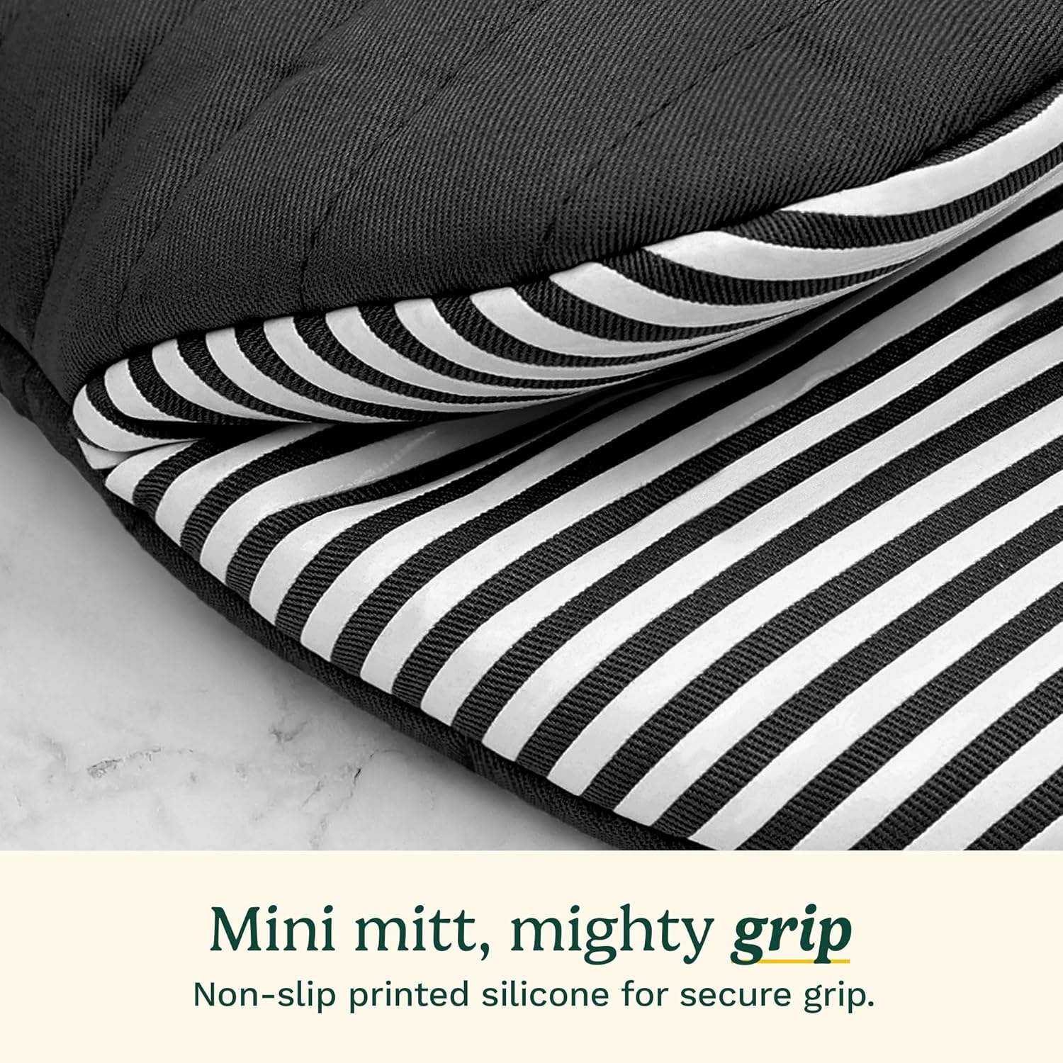 - OPTIMAL HEAT PROTECTION: These mini oven mitts are designed with slip-resistant printed silicone strips that offer a secure grip and high heat resistance (up to 450 degrees). Whether you're pulling a hot dish from the oven or handling a sizzling pan, these mitts provide essential protection for all your kitchen cooking and baking needs.