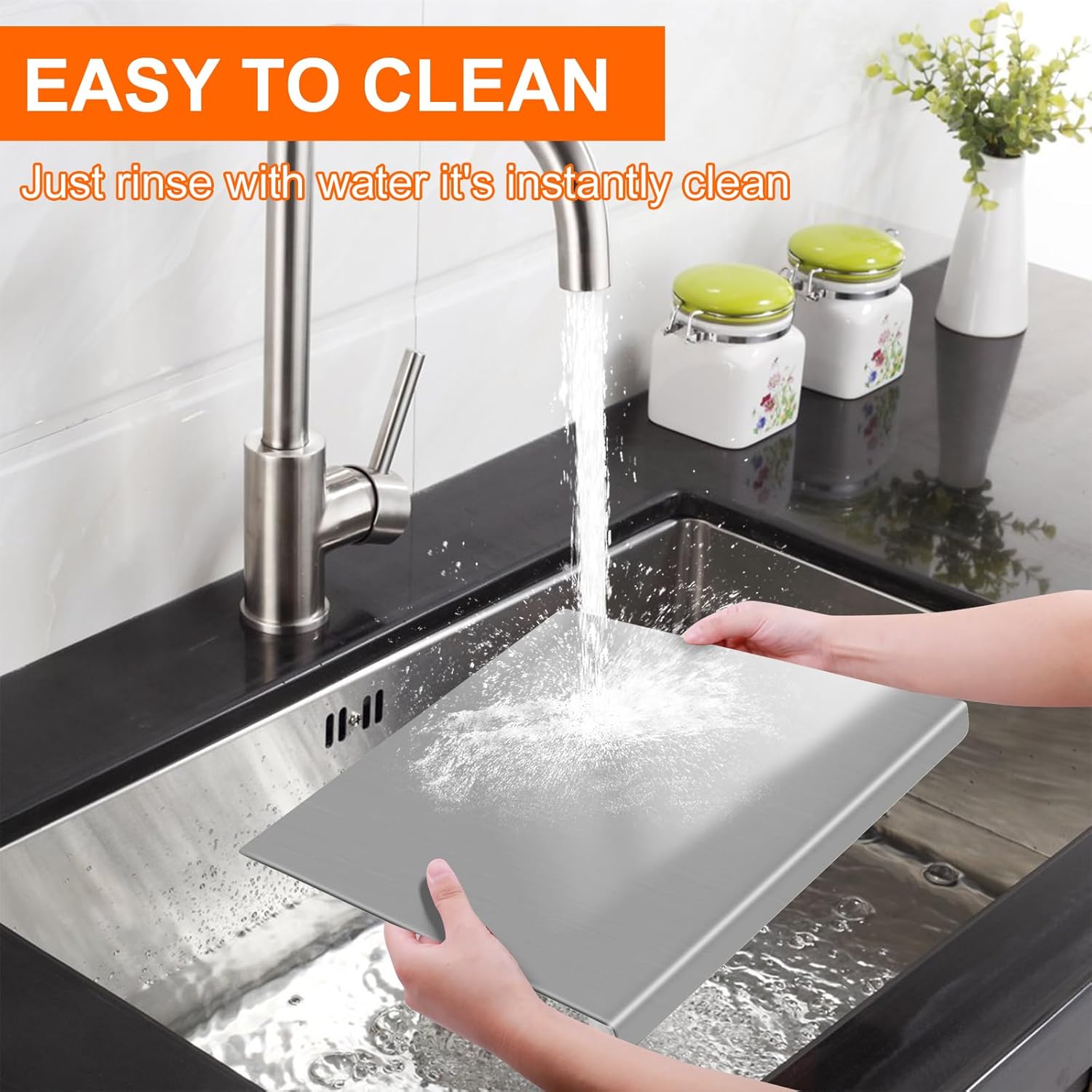 - 【CLEANUP IS SO EASY】Our stainless steel cutting board is non-porous and effortless to clean, making it super easy to maintain and resistant to lingering odors. No more worrying about yesterday's garlic invading today's salad!
