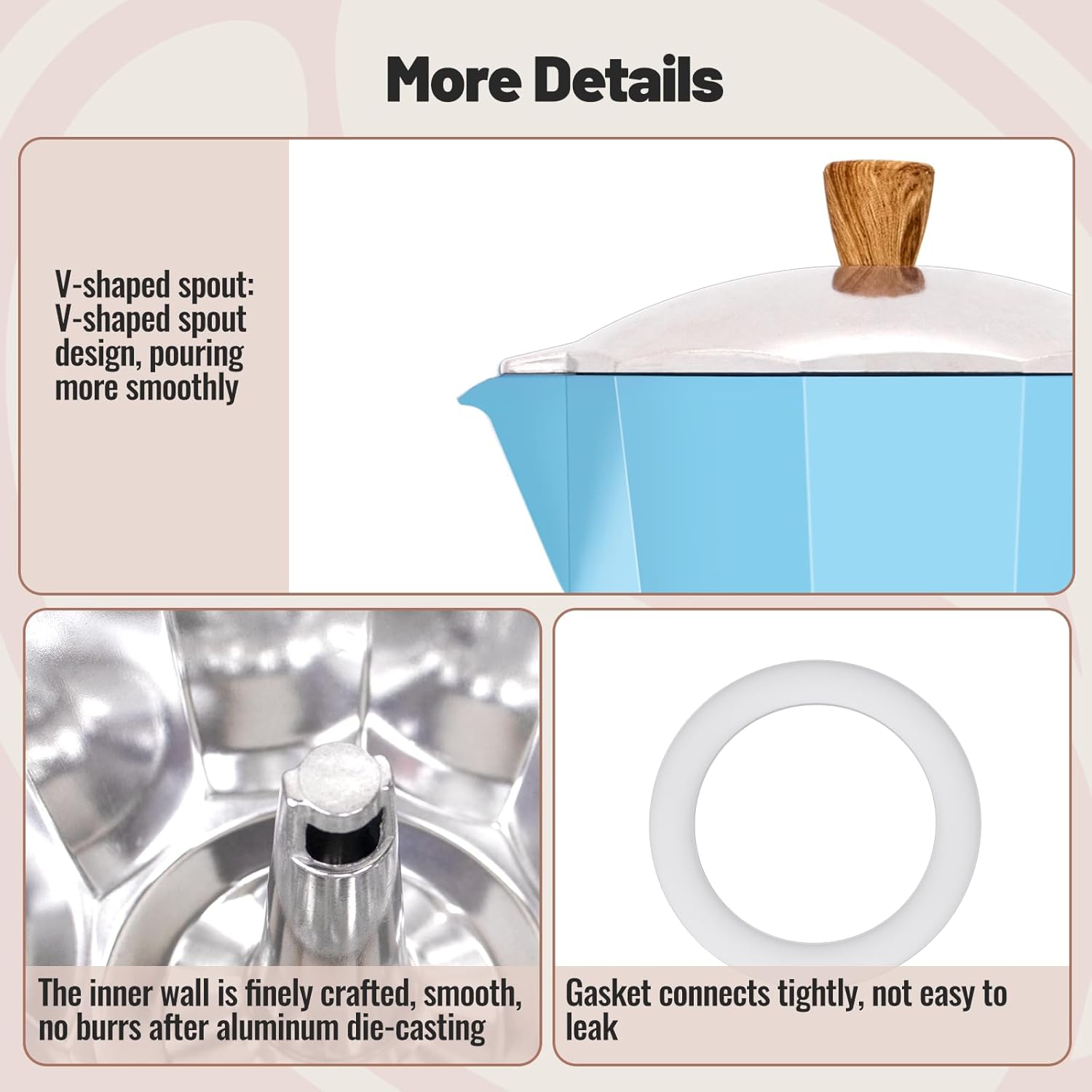 9 Cup Aluminum Moka Pot Classic Stovetop Espresso Coffee Maker 450ml 15oz Coffeemaker Percolator Mocha Pot Greca Coffee Maker Cafe Makers for Italian and Cuban Café Brewing Blue