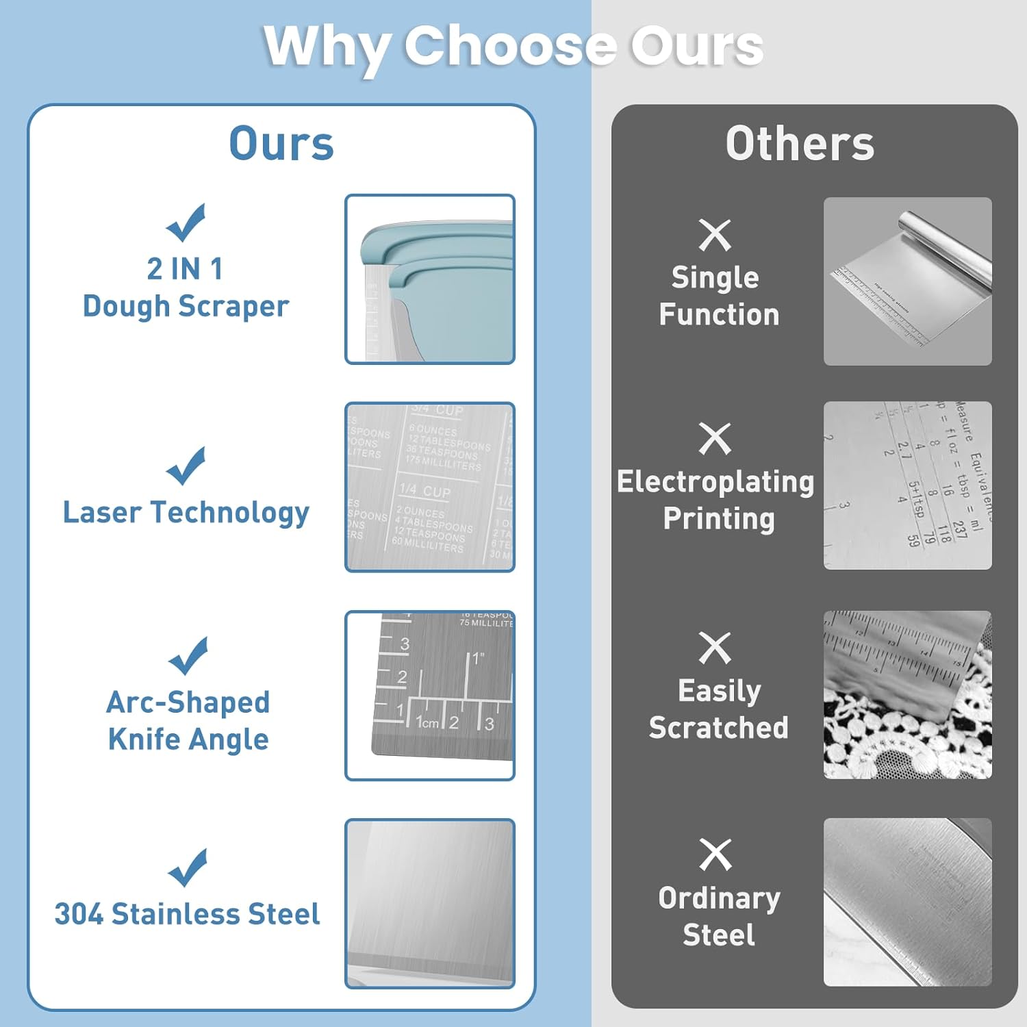 - 【Perfect Gift】Our dough scraper tool comes in a beautiful box. Bench scraper is a must-have for cooking enthusiasts. It makes a practical gift for yourself, family, and friends who bake!