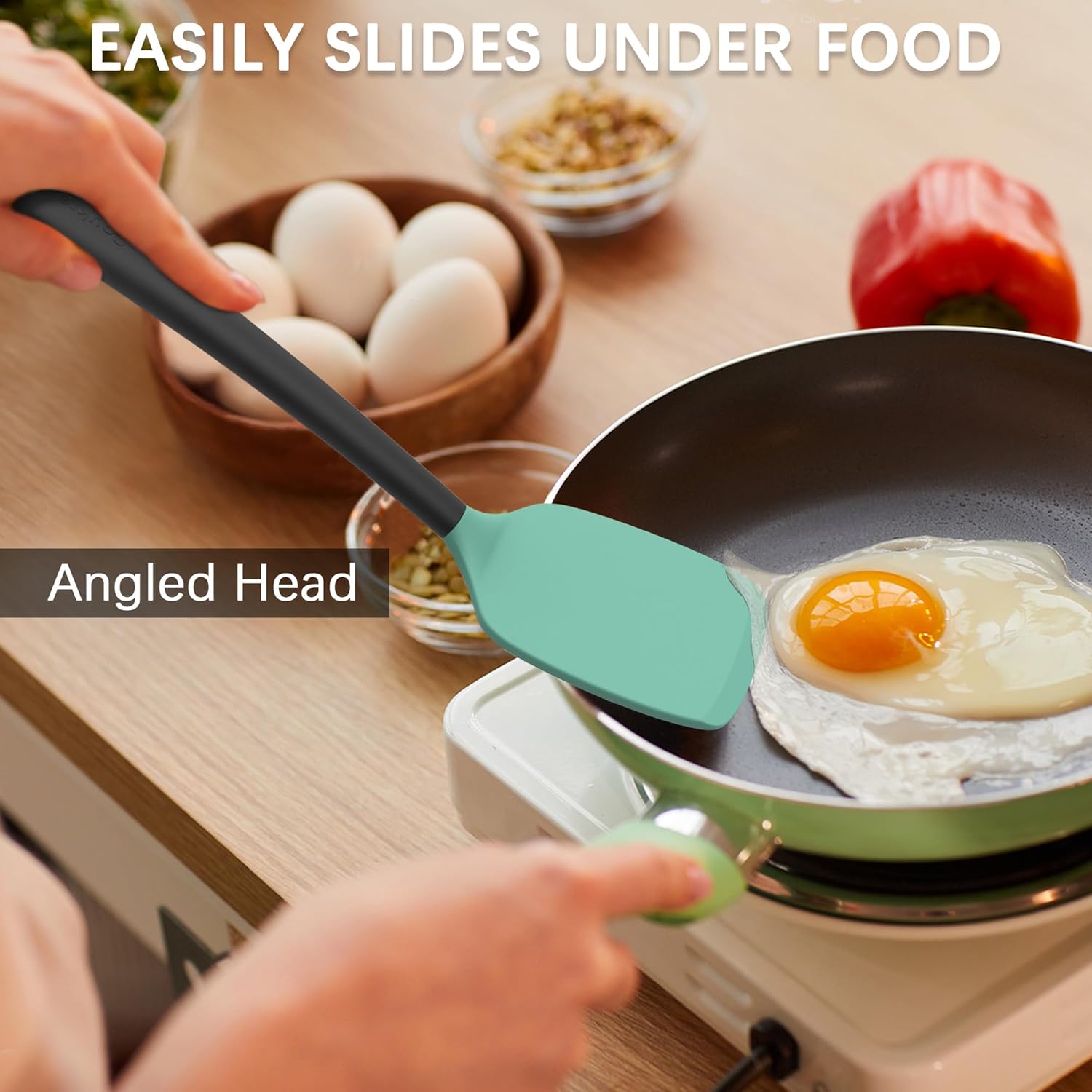 - [Sturdy Yet Flexible]: The kitchen spatula turner set features a reinforced nylon core, a silicone handle that makes the grip more comfortable, and the flexible head provides precise control, making flipping and stirring easier