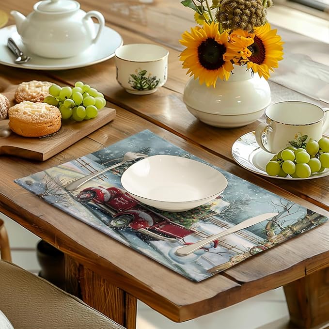 - PERFECTLY SIZE: The Christmas kitchen placemats set of 4, Each Christmas red truck place mat is 18脳12 inch (45cmx30cm) that can exactly fits your needs to use in all kinds of situations