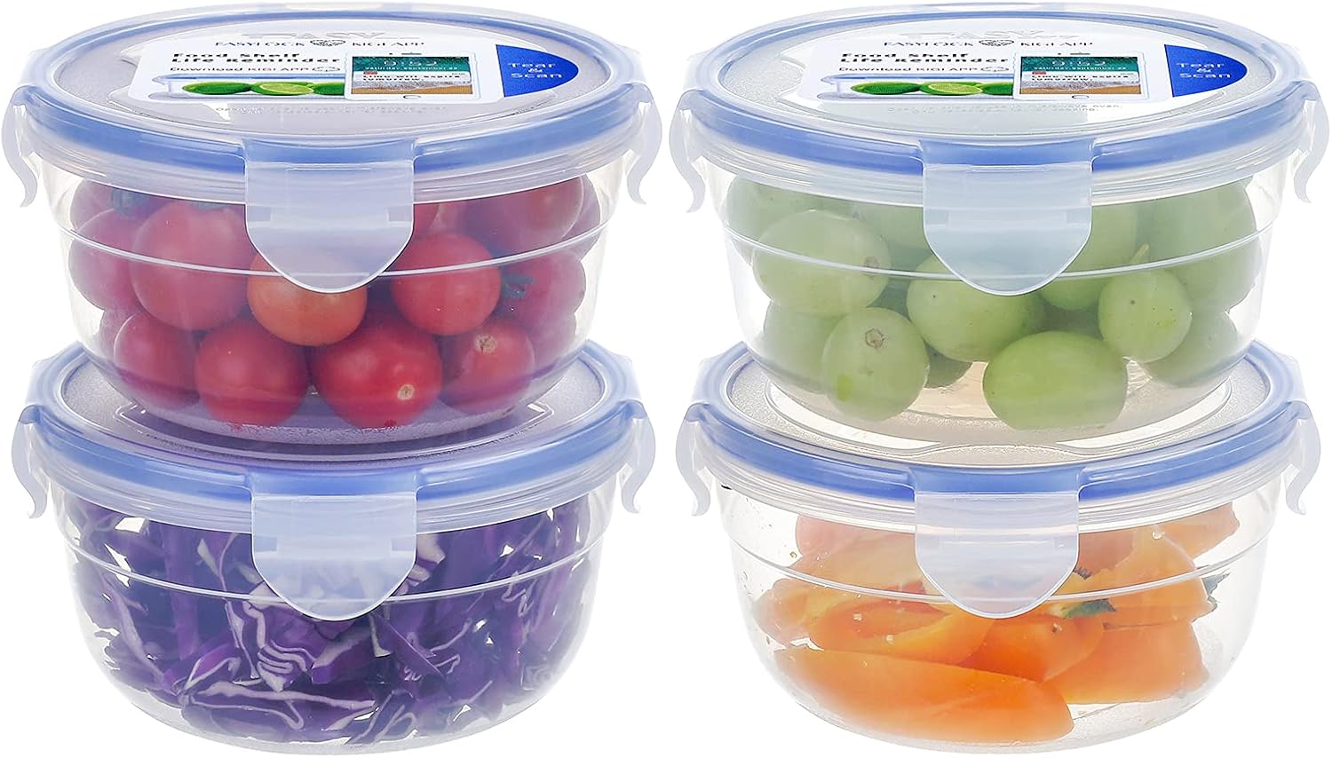 - 4 PACK PLASTIC FOOD CONTAINERS-10oz storage bowls set,could hold food,soups,sauces,condiments,nuts,snacks,also great to used for leftovers and meal preps