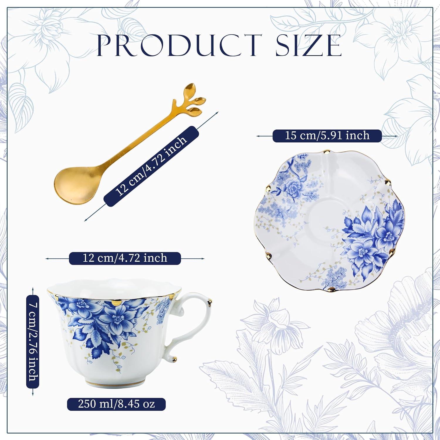 - Set Includes: 1 teacup (6.3 oz capacity) and 1 saucer, ideal for a single serving.