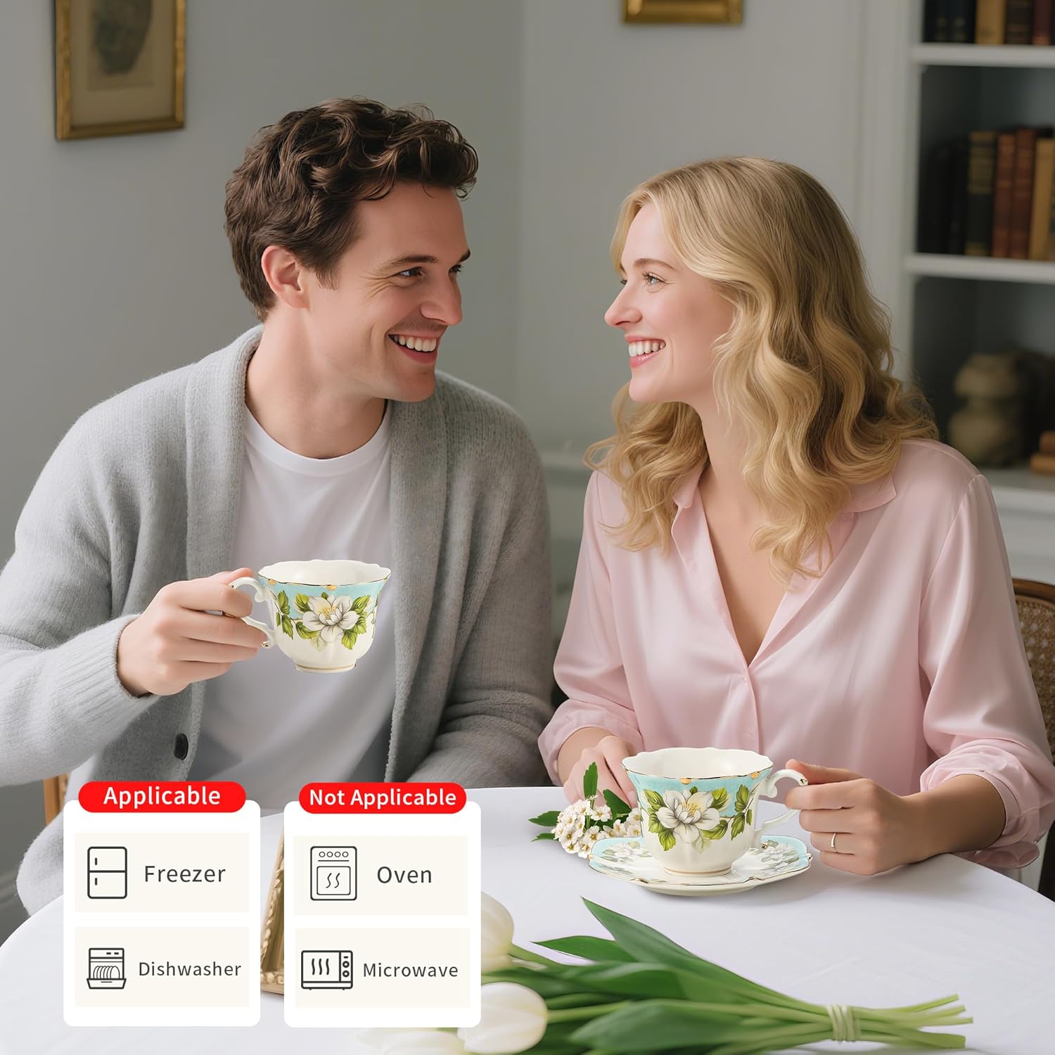 - Set Includes: 1 teacup (6.3 oz capacity) and 1 saucer, ideal for a single serving.