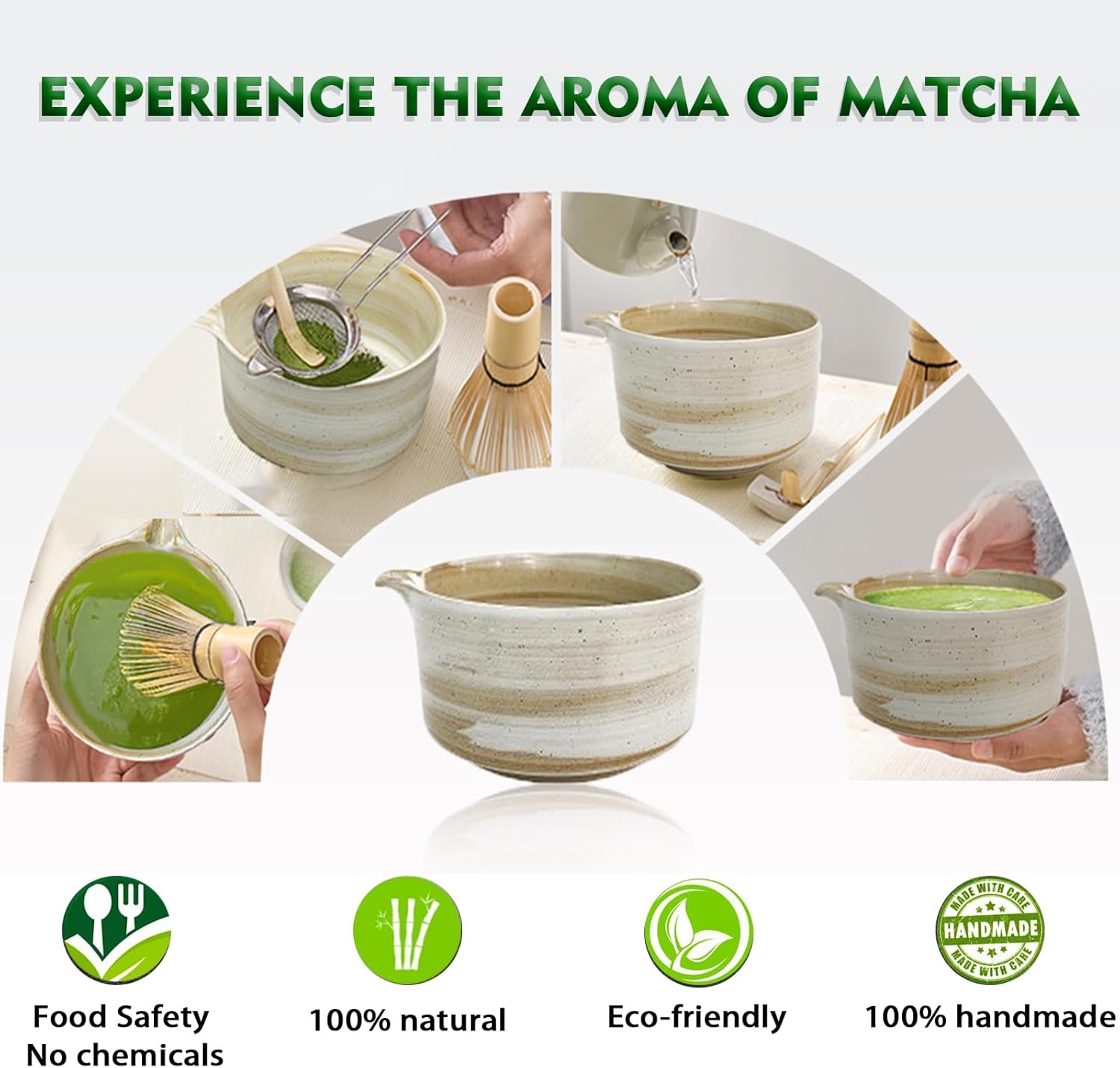 Matcha Whisk Set, Matcha Set, 6 Pieces, with Bamboo Whisk, Ceramic Bowl & Sifter Complete Matcha kit Tea Includes Scoop & Spout Bowl, Traditional Japanese Tea Accessories for Home (set of 6)