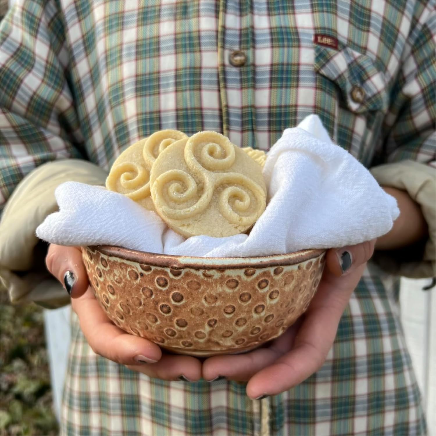 - The cookie stamp is carved from high-quality wood and sealed with a durable coat of food-grade flaxseed oil. Please don't soak the stamp in water and don't put your cookie stamp in the dishwasher.