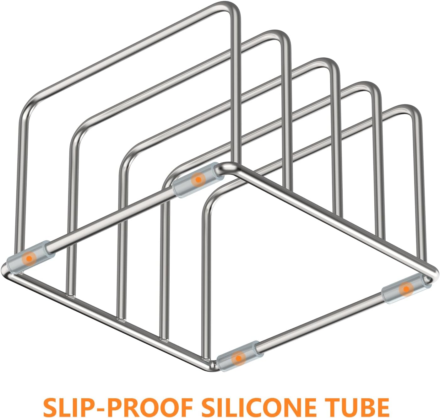 - 【Non Slip】There are four rubber tubes on the bottom to prevent the rack slipping around on the countertop, and the cutting boards can be inserted into the slots either vertically or horizontally.