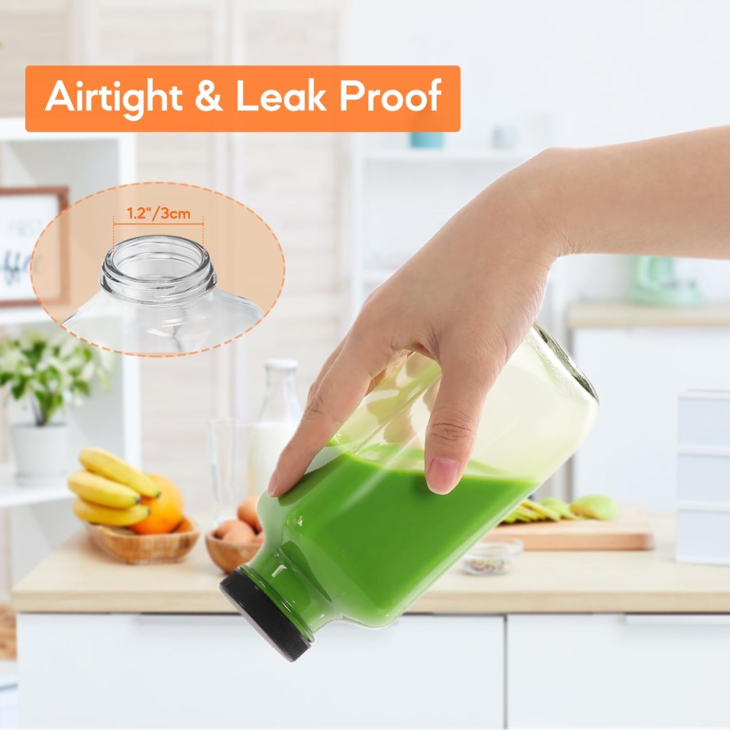 STARSIDE 16 oz Glass Juice Bottles with Lids 6 Pack - Square Reusable Drinking Jars for Juicing, Milk, Kombucha - Includes 1 Bottle Brush, 6 Colored Labels