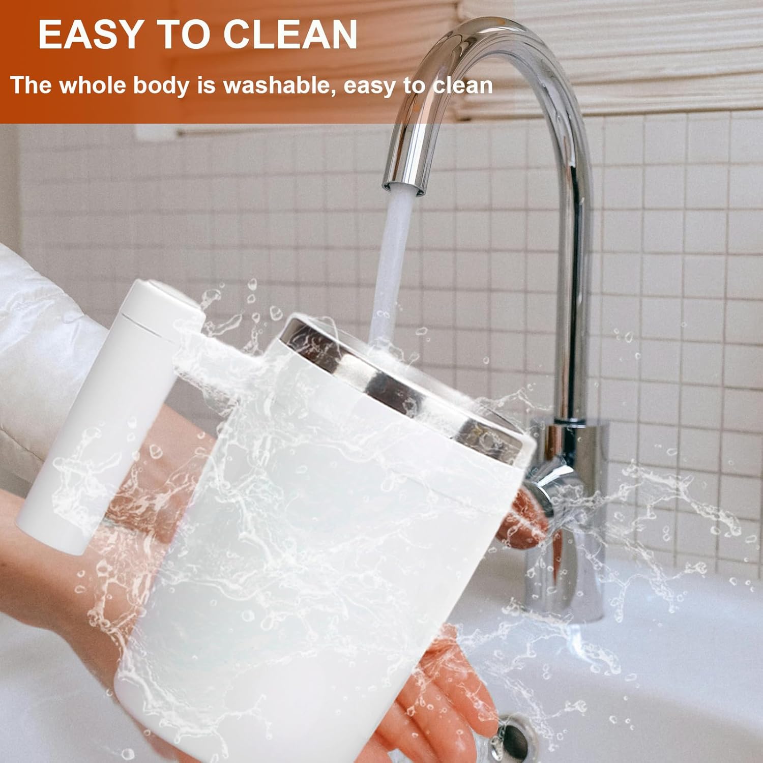 - High-Quality Self Stirring Coffee Mug Materials– This self stirring coffee mug is crafted with food-grade 304 stainless steel and durable ABS plastic, providing rust-resistance and heat-tolerance. The double-layer body maintains drink temperature while protecting hands, and the silicone lid with a non-slip base ensures silent, stable placement.
