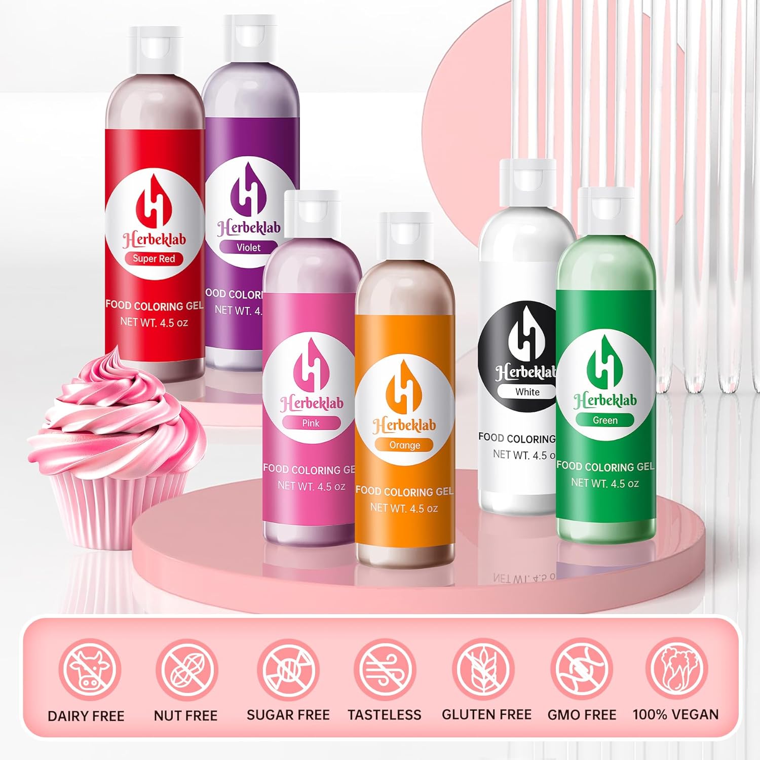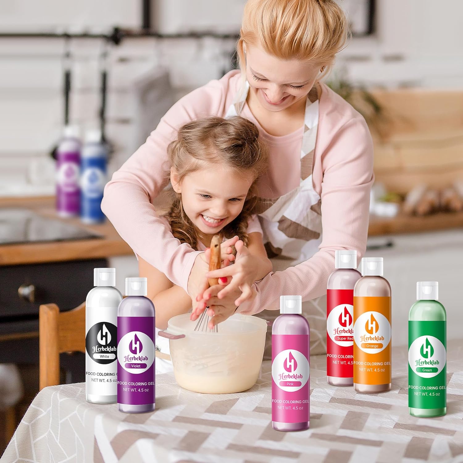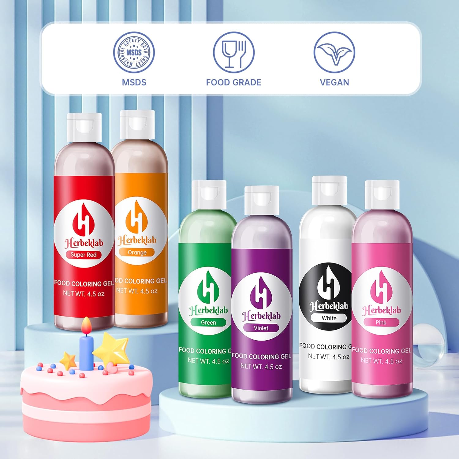 - Vibrant Colors for Cake Decorating: Unleash your creativity with gel food coloring including white, super black, super red, royal blue, orange, green, pink and violet. Each of the food coloring gel bottle contains 4.5 oz of color. Whether you're a professional baker or a home enthusiast, you'll have plenty of vibrant hues to bring your culinary creations to life