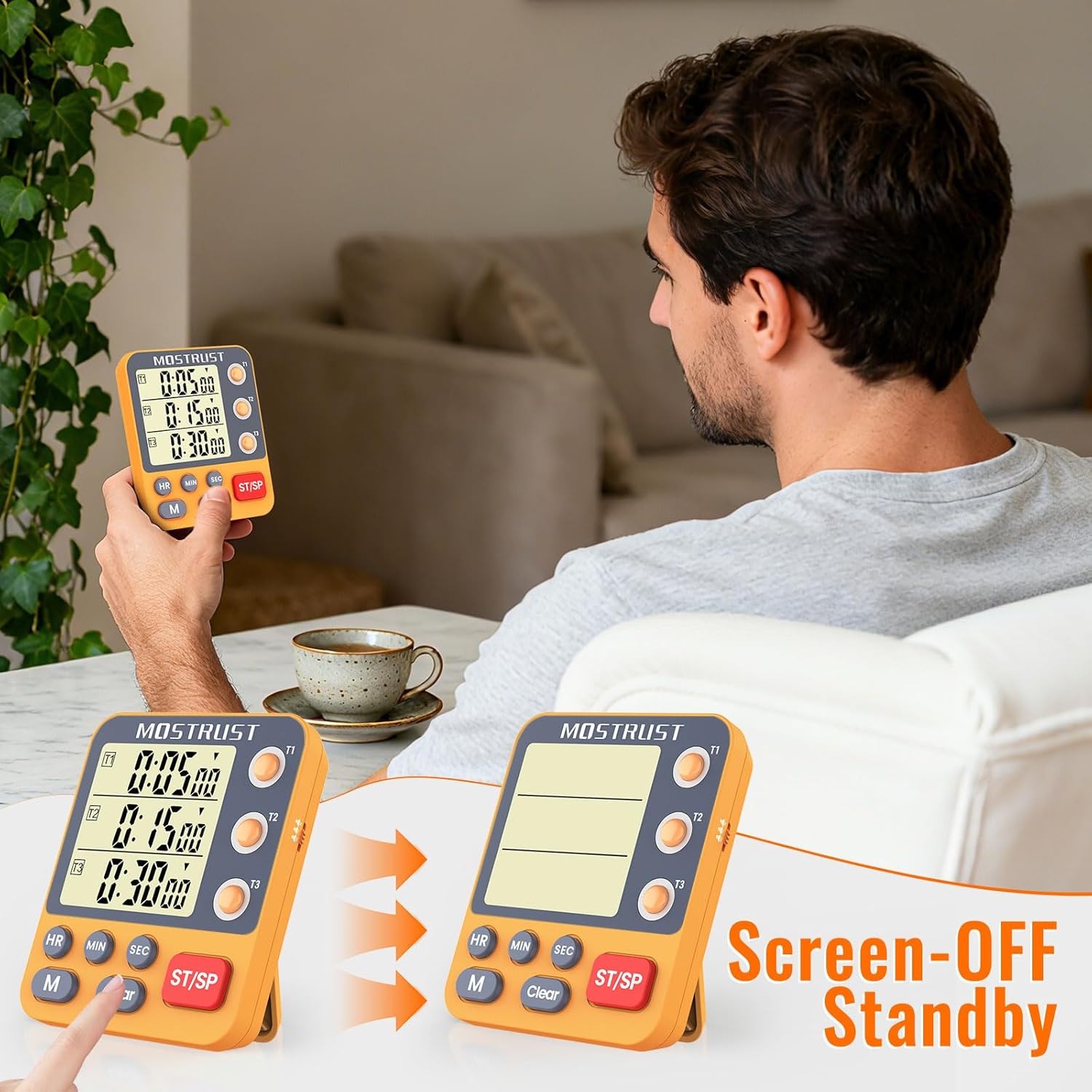 - 【LARGE DISPLAY & EASY TO USE】The triple cooking timer with screen protector and high contrast large display provides a clearer bold numbers, which make it easier to read. Meanwhile Press "CLEAR" to set to ZERO, and then start timing! Simple and easy button design, kids also can use it without thinking