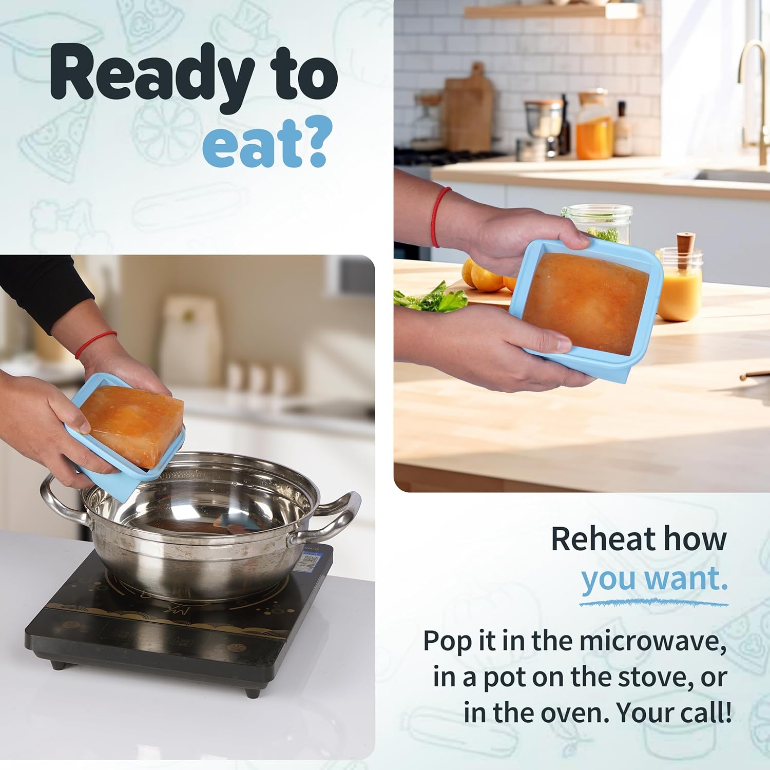 - VERSATILE & CONVENIENT FOR ANY KITCHEN TASK Use them for: Freezing homemade soups, sauces, and broths Storing baby food and portioning snacks Baking (up to 415°F without the lid) Making ice cubes, chocolates, and more! Dishwasher-safe for quick and easy cleaning, they save you time in the kitchen.