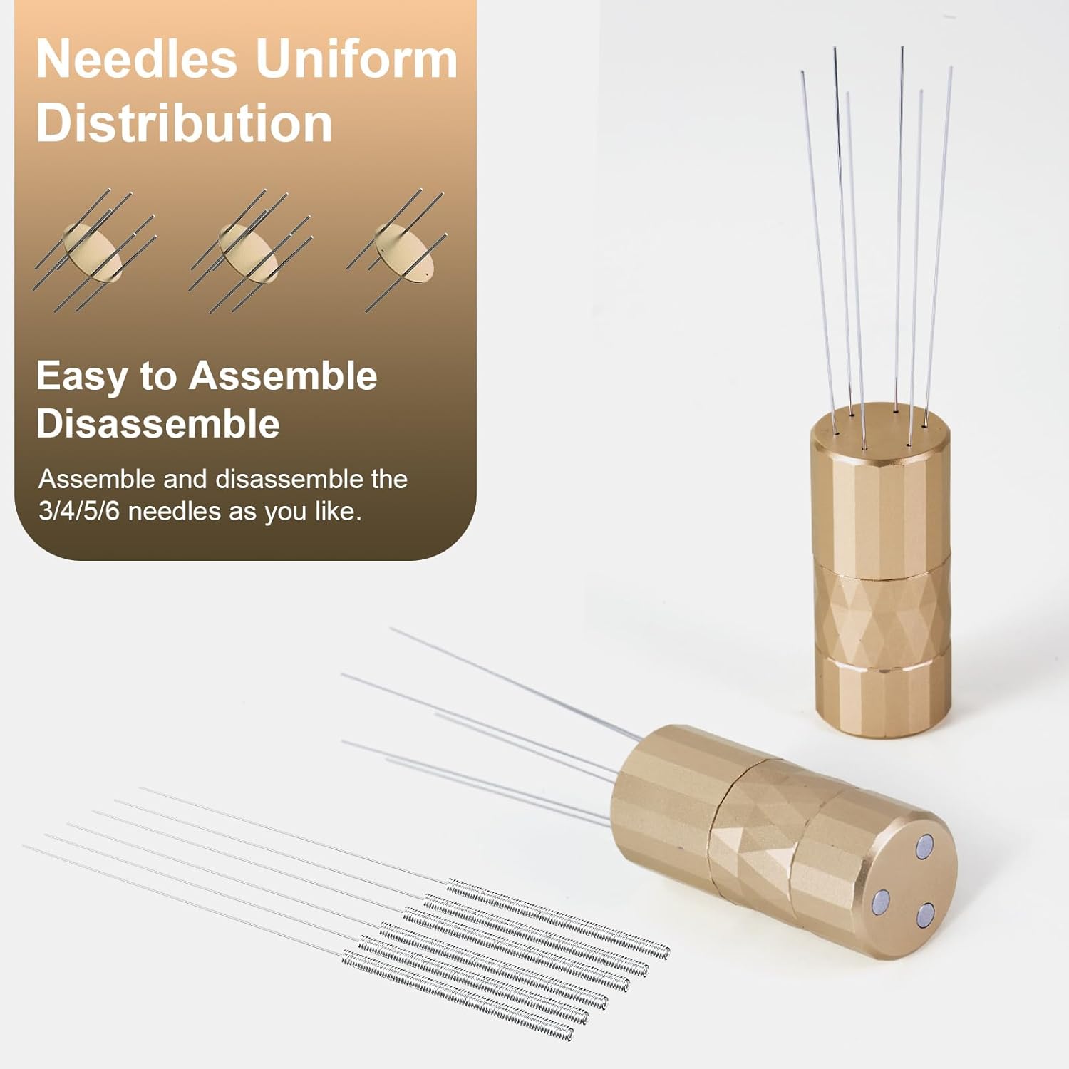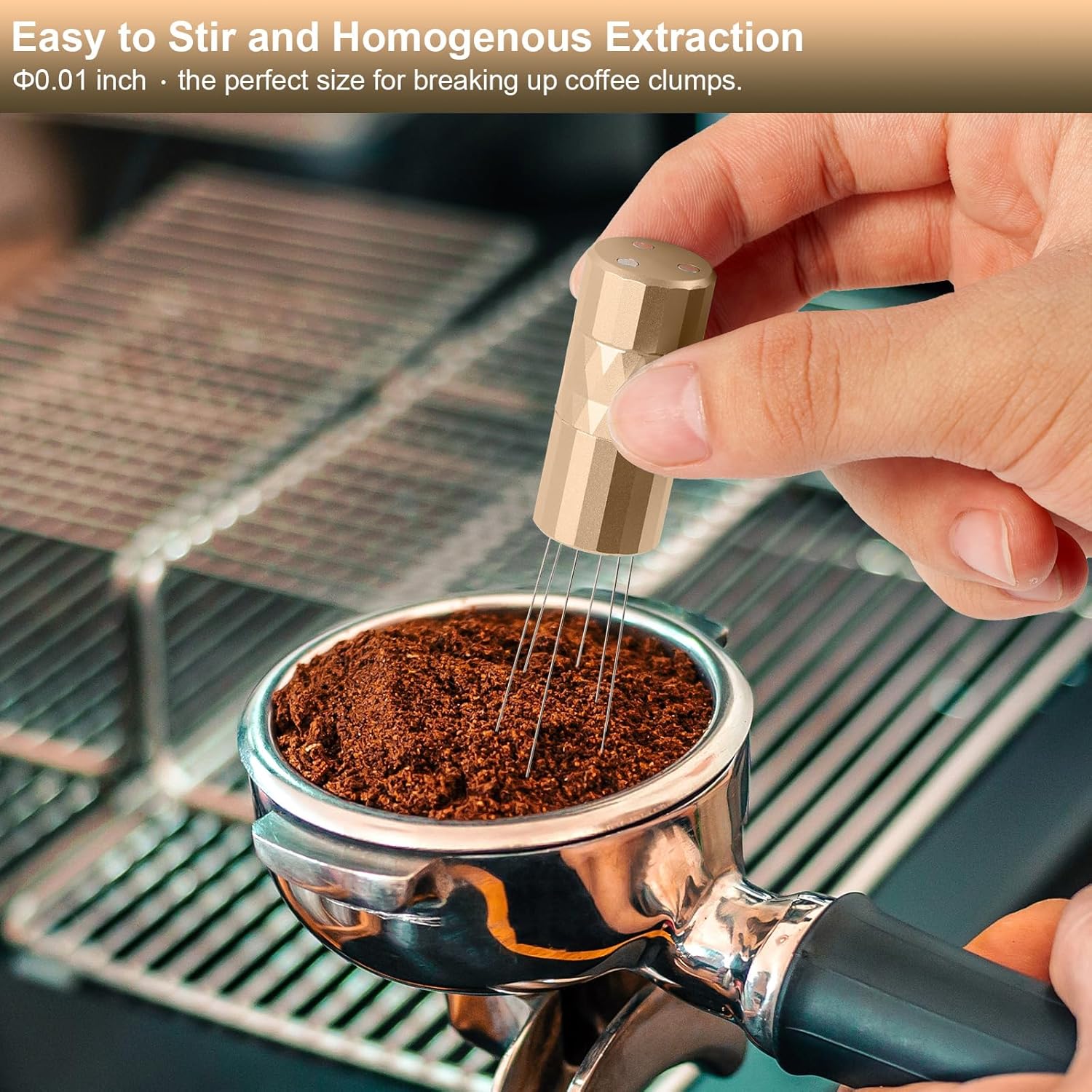 WDT Tool Espresso Distribution Tool, Coffee Distribution Tool with Magnetic Stand, Espresso Accessories with 6 Extra Φ0.25mm Stainless Steel Needles for Barista (Rich Gold, Φ0.25mm)