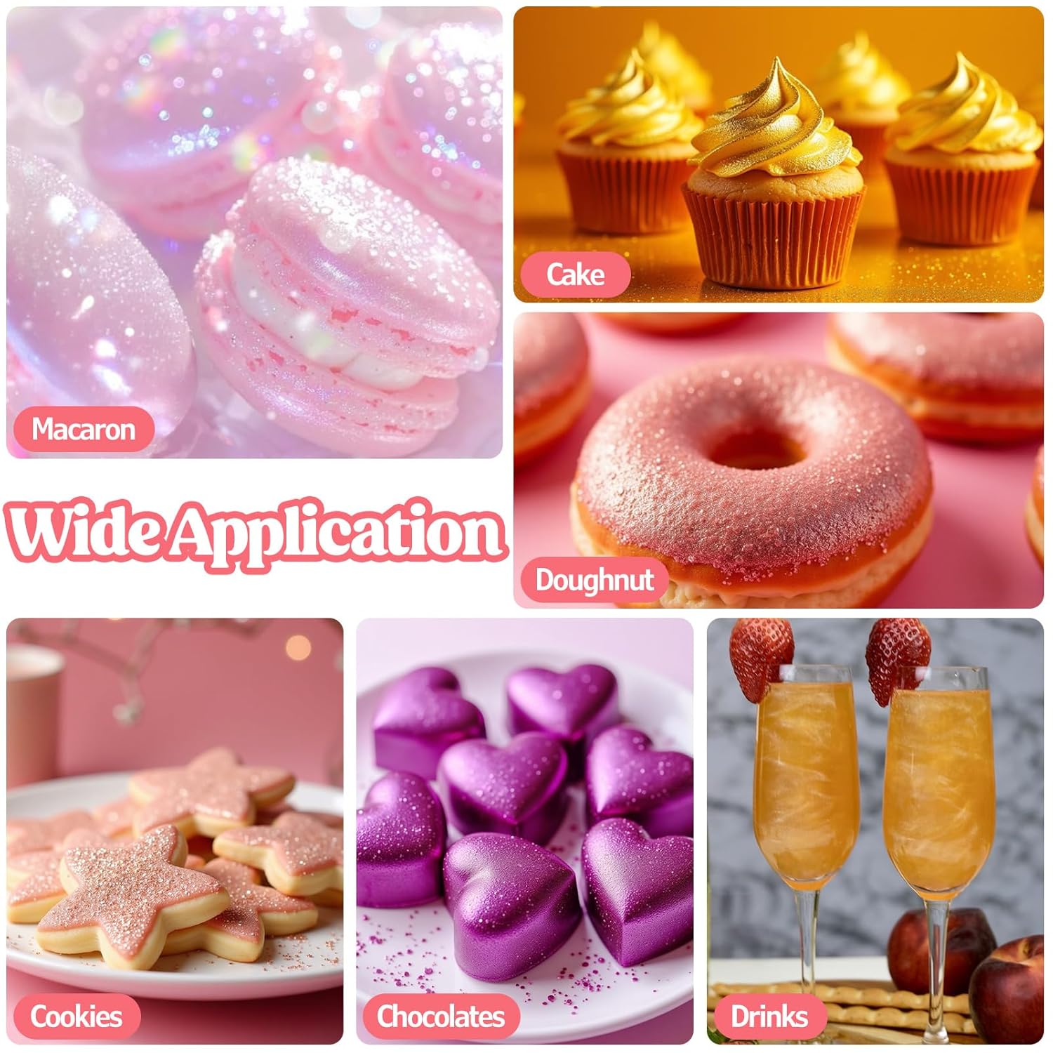 - Safe & Non-Toxic -100% edible food-grade glitter powder in 0.28 oz/8 g. Our edible glitter is made from food-grade ingredients that is vegan-friendly, gluten-free, dairy-free, non-GMO, it will not alter the original taste or texture of beverages and foods. so everyone can use and enjoy this product regardless of diet or food allergies