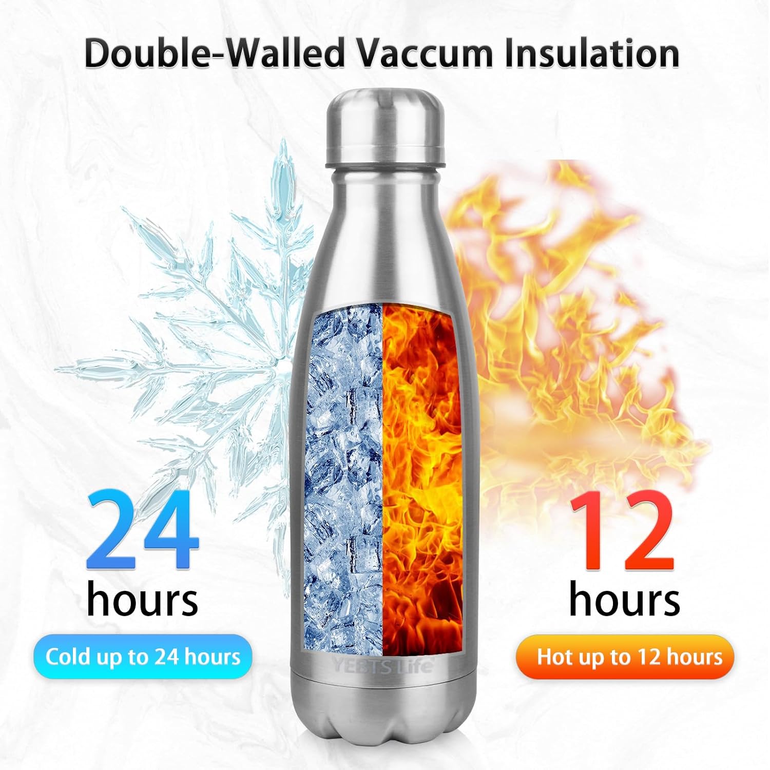 - SAFE & HEALTH:YEBTS life's insulated water bottles are made from BPA-free,phthalate-free, non-toxic, high-quality 18/8 food-grade stainless steel that is strong and rust proof for unique durability.So kids can sip every sip of their favourite beverage with confidence.Children drink water every day,a healthy water bottle is very important to them.This high-quality stainless steel water bottle is definitely the best growth gift for children!