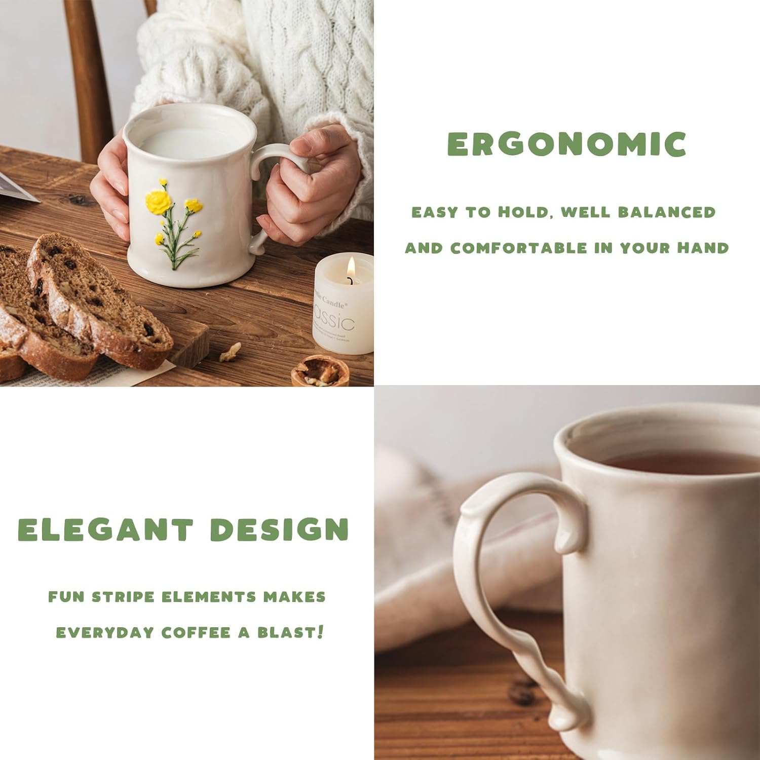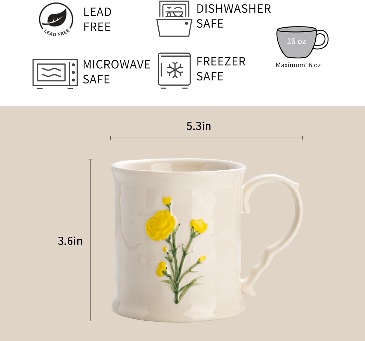 Ceramic coffee Mugs, Set of 1 Yellow Flower - 12oz, Hand-Painted, Microwave heating and dishwasher cleaning available, Ideal for Daily Brews