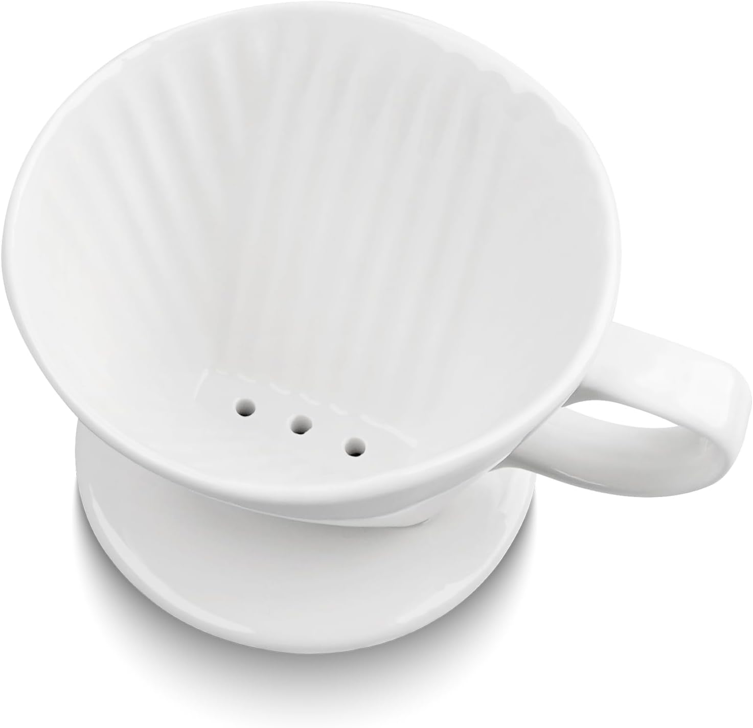 Handmade Pour Over Ceramic Coffee Dripper - Authentic Brewing Experience for Camping, Office, and Home (White)