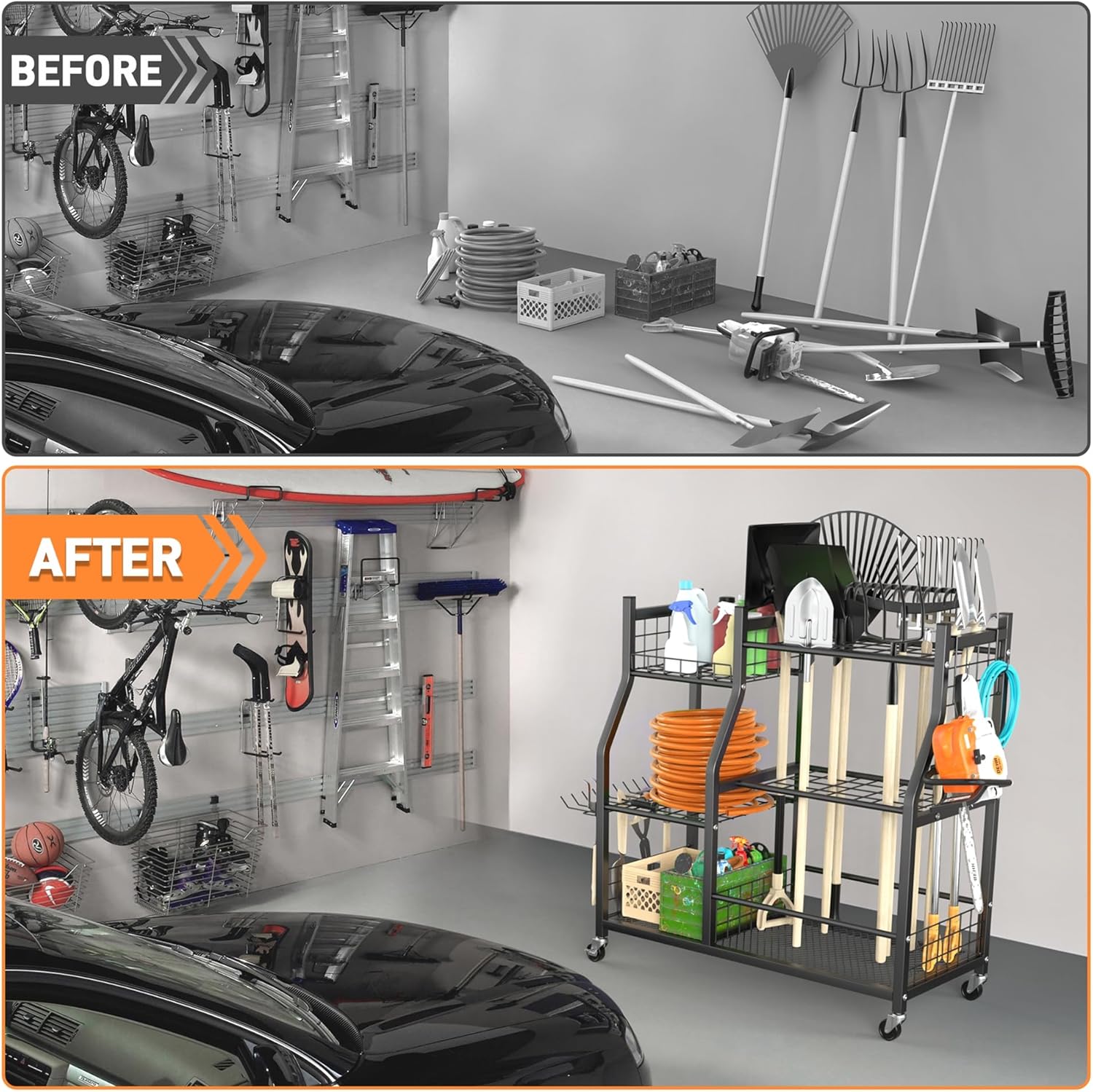 - Quick and Easy Tool Access: Perfect for garages, sheds, and gardens, this yard tools cart gives you access to tools from every side. Grab what you need without hassle and save time during your gardening projects