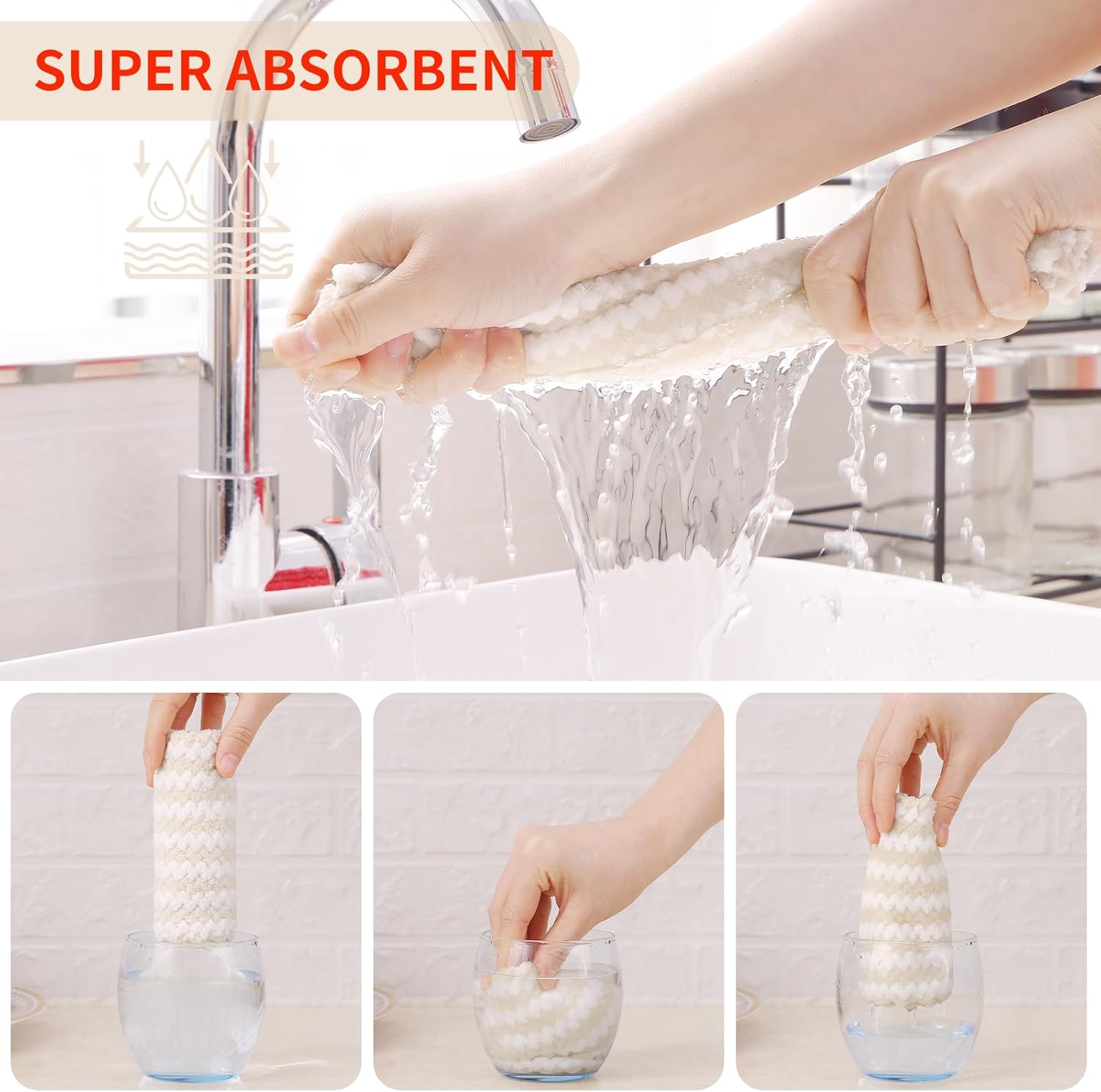 - Super Soft and Absorbent: Experience the luxurious softness of our dish towels. They are crafted with high-quality materials which feels soft and won't scratch your hands or any surfaces. Strong water absorption, easily absorb liquid and overflow, make the surface clean and dry.