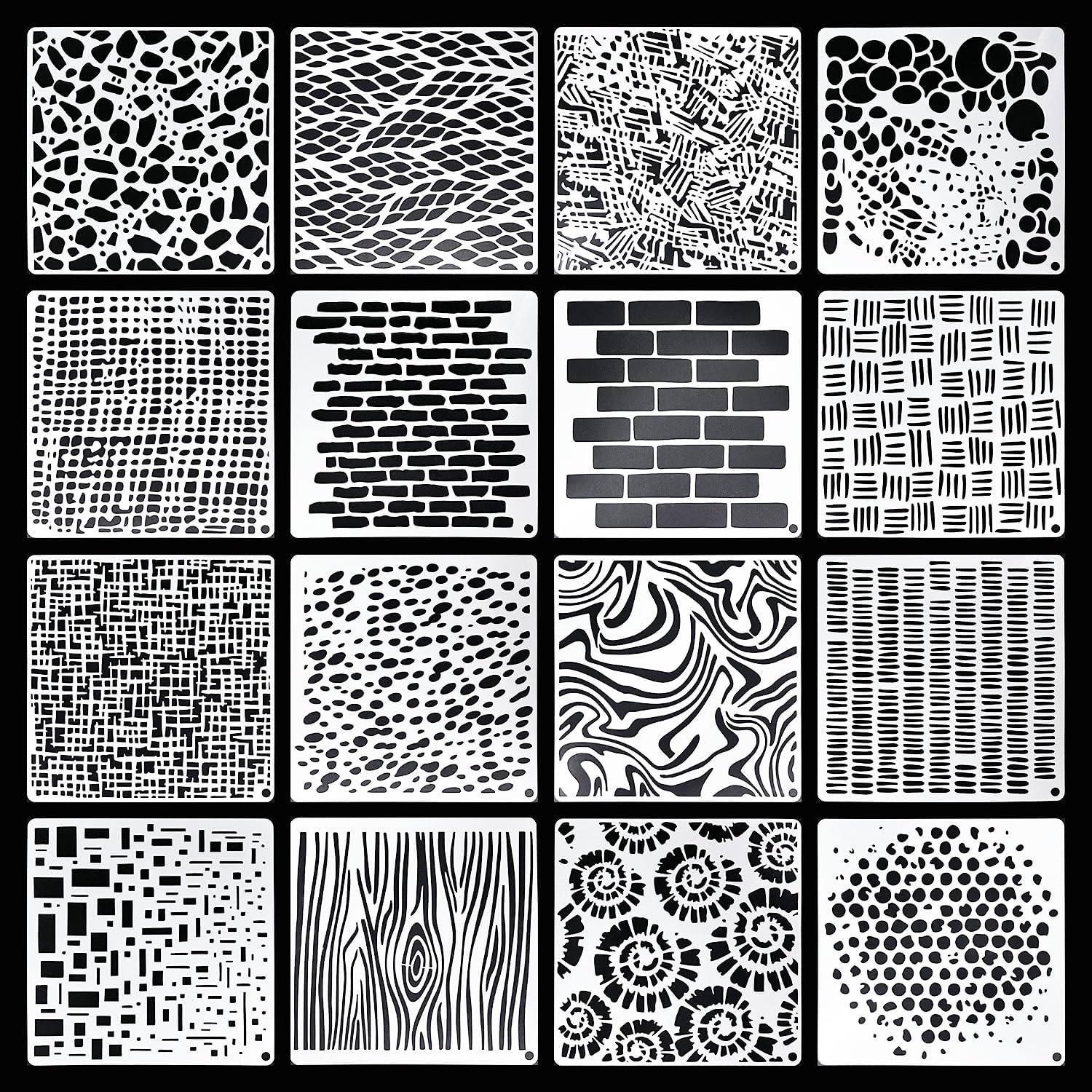 16Pcs Geometric Pattern Stencils for Crafts 6x6 Inch Brick Dot Layering Stencils for Painting on Wood Mixed Media Texture Stencil for Painting on Walls Furniture Fabric Canvas Card Making