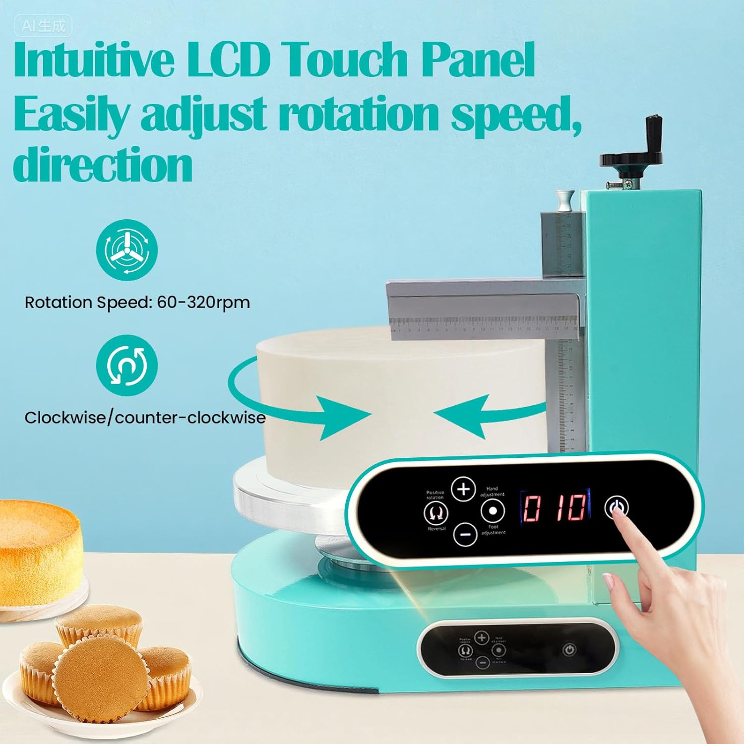 - Efficient Work:cake decorating machine equipped with pure copper motor and sharp big knife, with excellent performance, high power (200W) and high speed (up to 320rpm), it can easily smooth the buttercream on the cake blanks in a short time, saving time and labor.