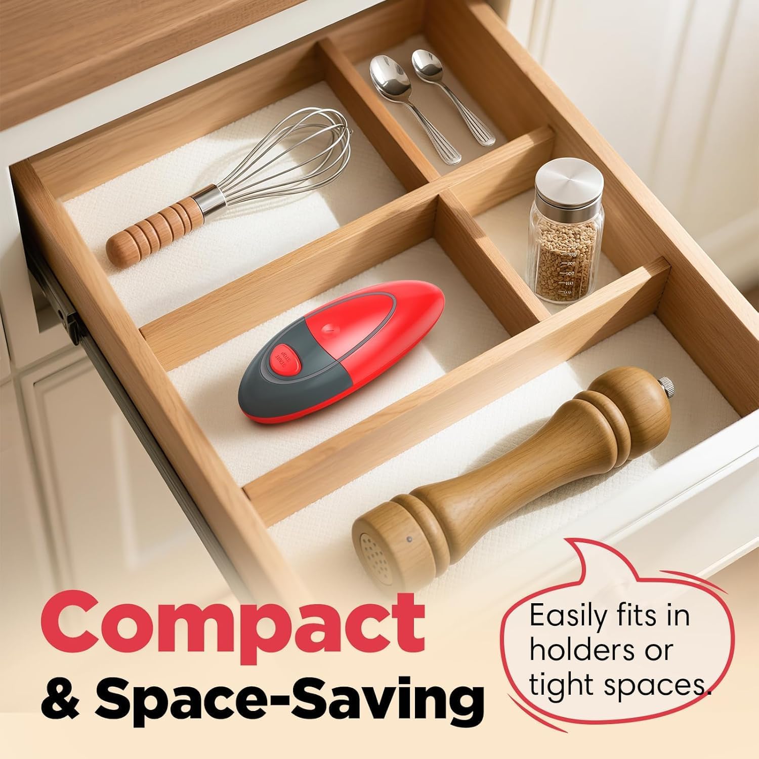 - 【Tucks Away Like a Spice】Slip the electric can opener for senior into your cluttered drawer—it’s as slim as your pepper mill. Battery operated can opener means no cords to untangle, ever