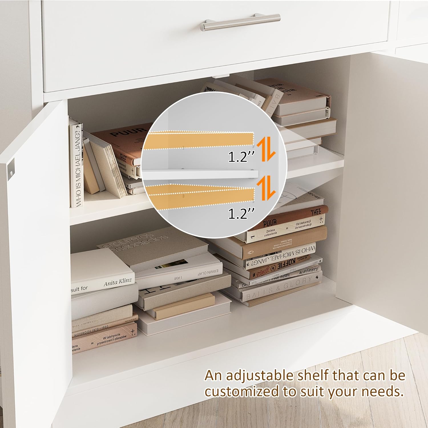 Vongrasig Buffet Cabinet with Drawers, 43” Coffee Bar Cabinet Farmhouse Kitchen Buffet Storage Cabinet with 3 Doors, Wood Buffet Table for Kitchen Living Room,White