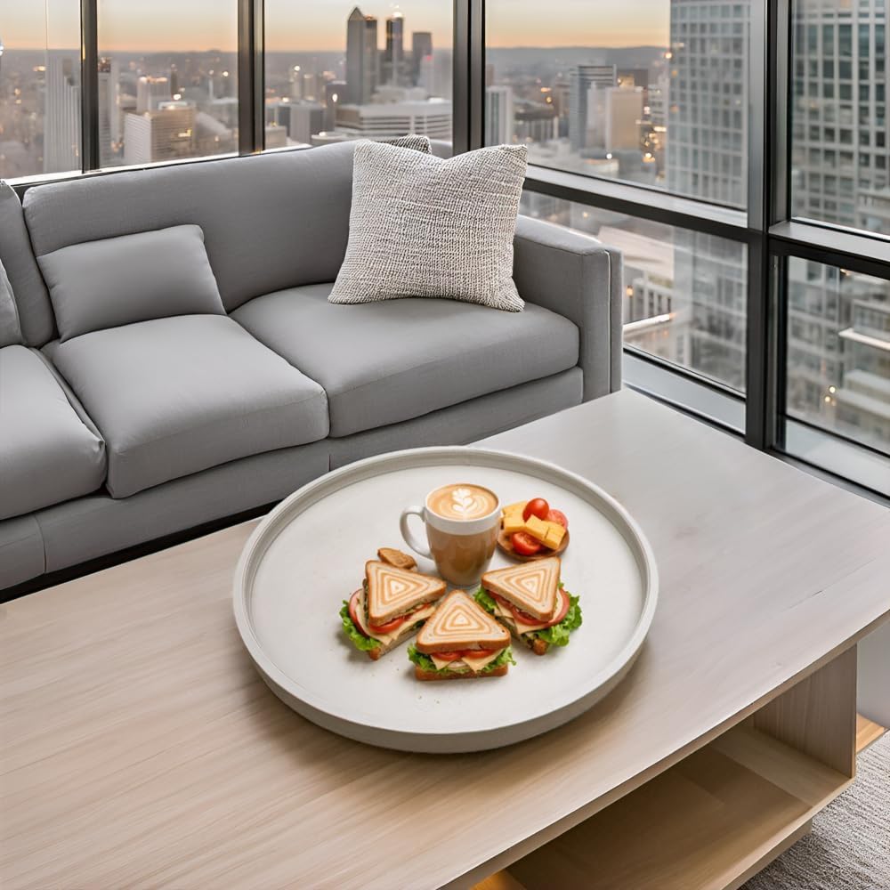 20 * 20 inches High-end Luxury Leather Round Oversized Service Tray, Ottoman & Coffee Tray for Family Dinner, Out-of-House Picnic, Party Essential (20 inch Beige)