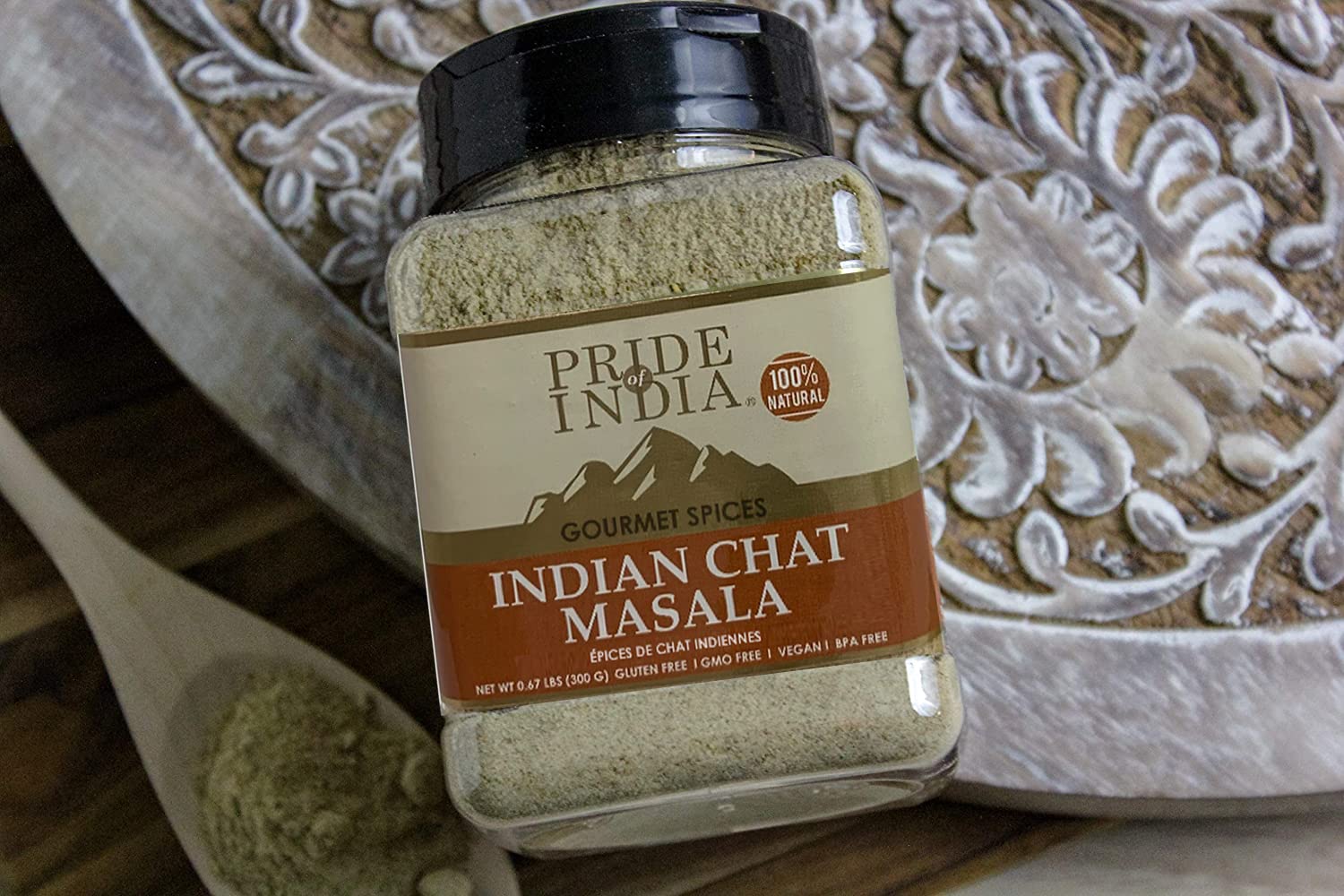 Pride of India - PACK of 6 - Indian Chat Masala Seasoning Spice – For Savory Dishes -Perfect Seasoning for Drinks/Salads/Fruits -Preservatives Free-Easy to Store – 8oz. Medium Dual Sifter Jar