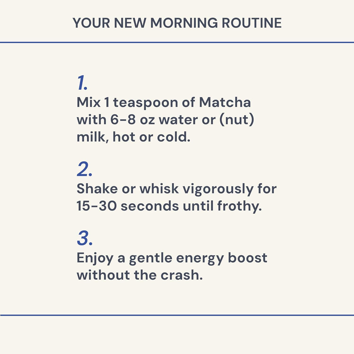- 30 Servings per Container – Each jar includes approximately 30 servings, providing a simple and effective way to enjoy matcha as part of your regular wellness routine.