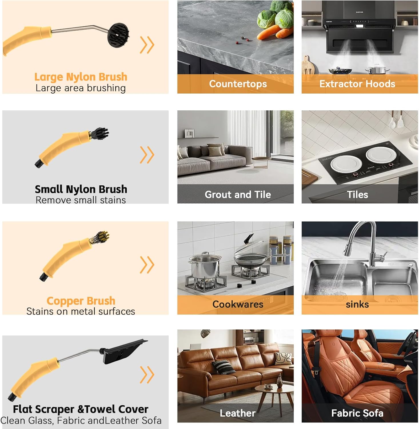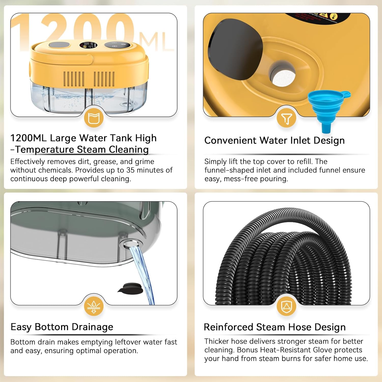 - 【Chemical-Free Friendly Steam Cleaner】Our safe and reliable handheld steam cleaner uses only water, eliminating the need for harmful chemicals. It effectively cleans all types of house cleaning and hard-to-reach areas, making it an ideal choice for families who with children, elderly members, pregnant individuals and pets