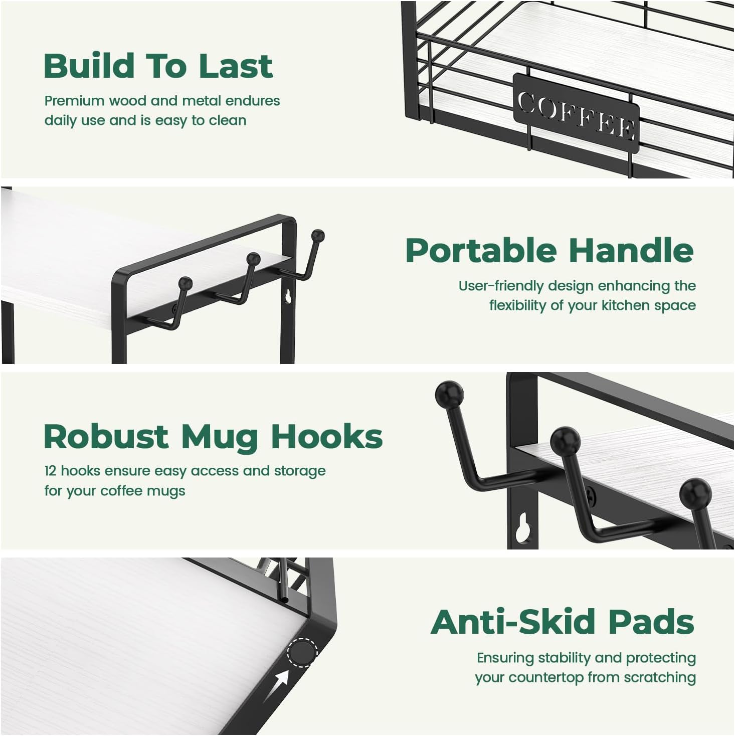 - Space-Saving Solution: Optimize your kitchen space with our compact yet capacious coffee mug rack organizer, perfect for streamlining any coffee station setup