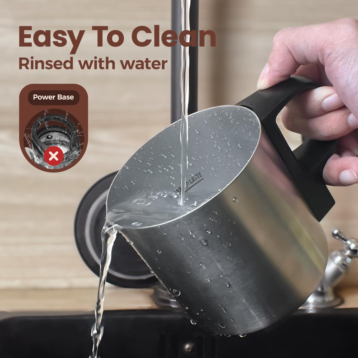 - Easy to Clean: The frother for coffee has a removable base and stainless steel milk jug for easy pouring of milk. The inside of the milk jug is smooth and non-stick, easy to clean; you can also clean it in the dishwasher. Note: Keep the base of the removable sensor milk frother dry when in use.