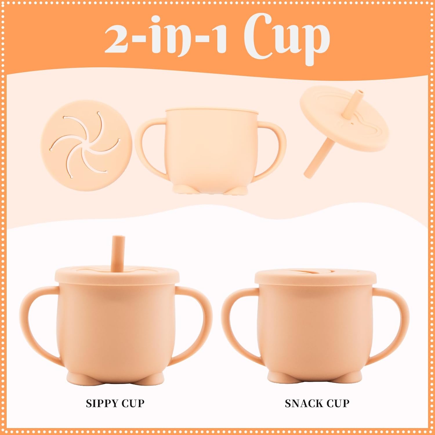 - Baby Led Weaning Supplies: Our silicone bib is designed with a deeper and sturdier pocket, making it highly effective in catching dropped food and easy to clean. The adjustable circular design is particularly gentle on your baby's skin. Our training cup is expertly crafted to fit snugly in your baby's small hands and mouth, safeguarding their developing teeth. Furthermore, the straw is equipped with a spill-proof function, aiding babies in transitioning from breastfeeding and promoting independent drinking.