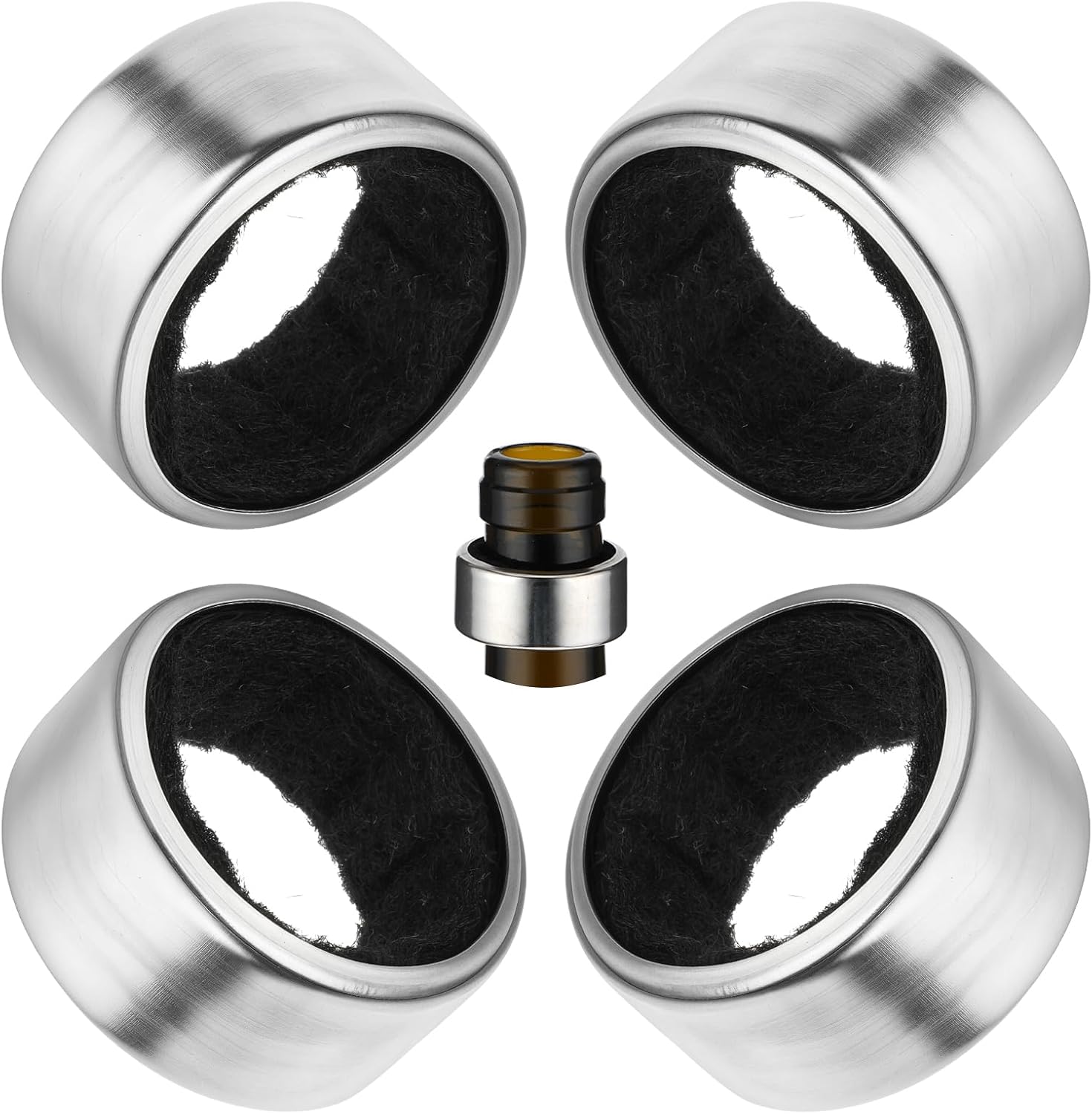 4PCS Wine Drip Ring, Wine Drip Collars Stainless Steel Wine Collar Drip Ring Simple Wine Bottle Drip Collar with Velvet Felts Clever Dripper Guard Holder Tools Bar Kitchen Gadgets Wine Accessories