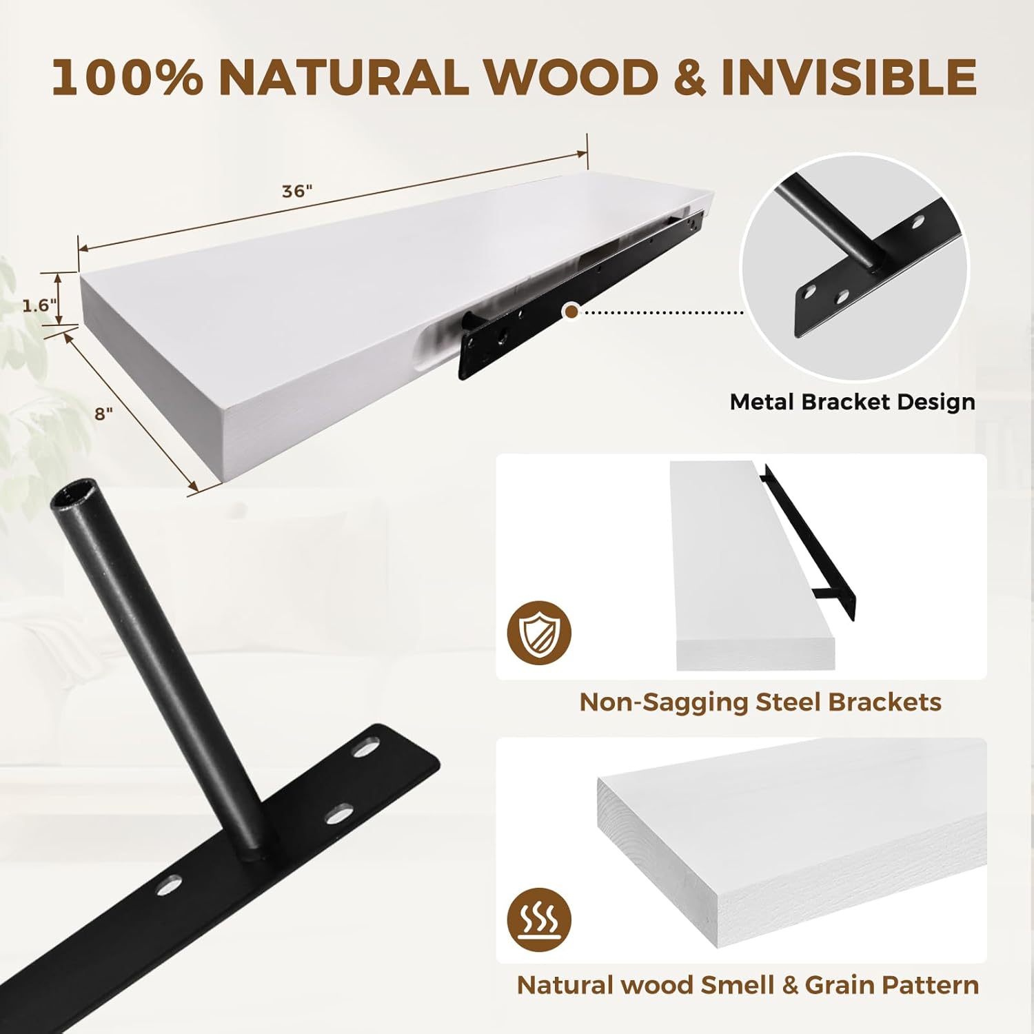 - Extra-Wide & Strong Build: With a wider 8-inch depth and solid wood thickness, this wall-mounted floating shelf holds more with ease—no bending or sagging under weight
