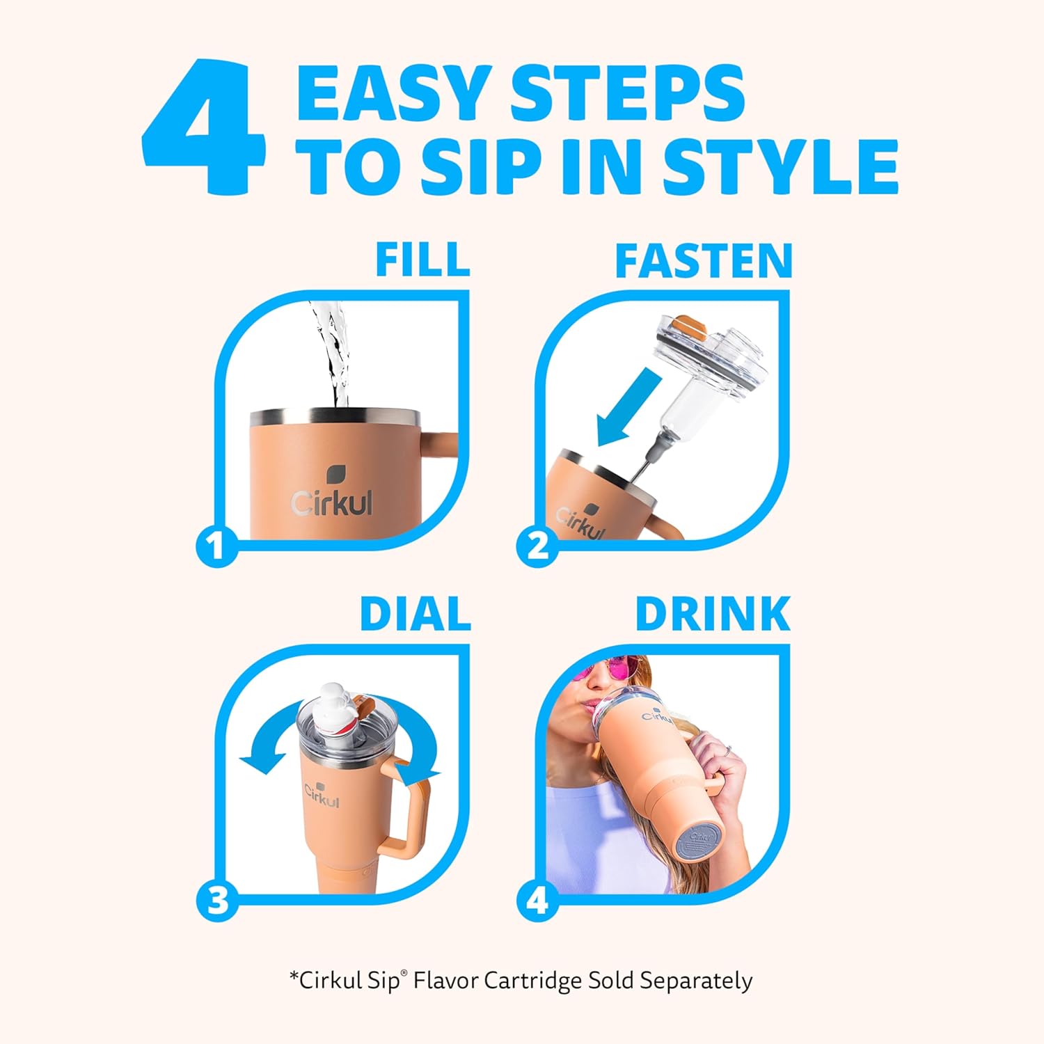 - HAND WASH: Give your Cirkul Tumblers, Tumbler Lids, and Straws a thorough cleaning with warm, soapy water. This helps keep them fresh and ready for your next flavor adventure!