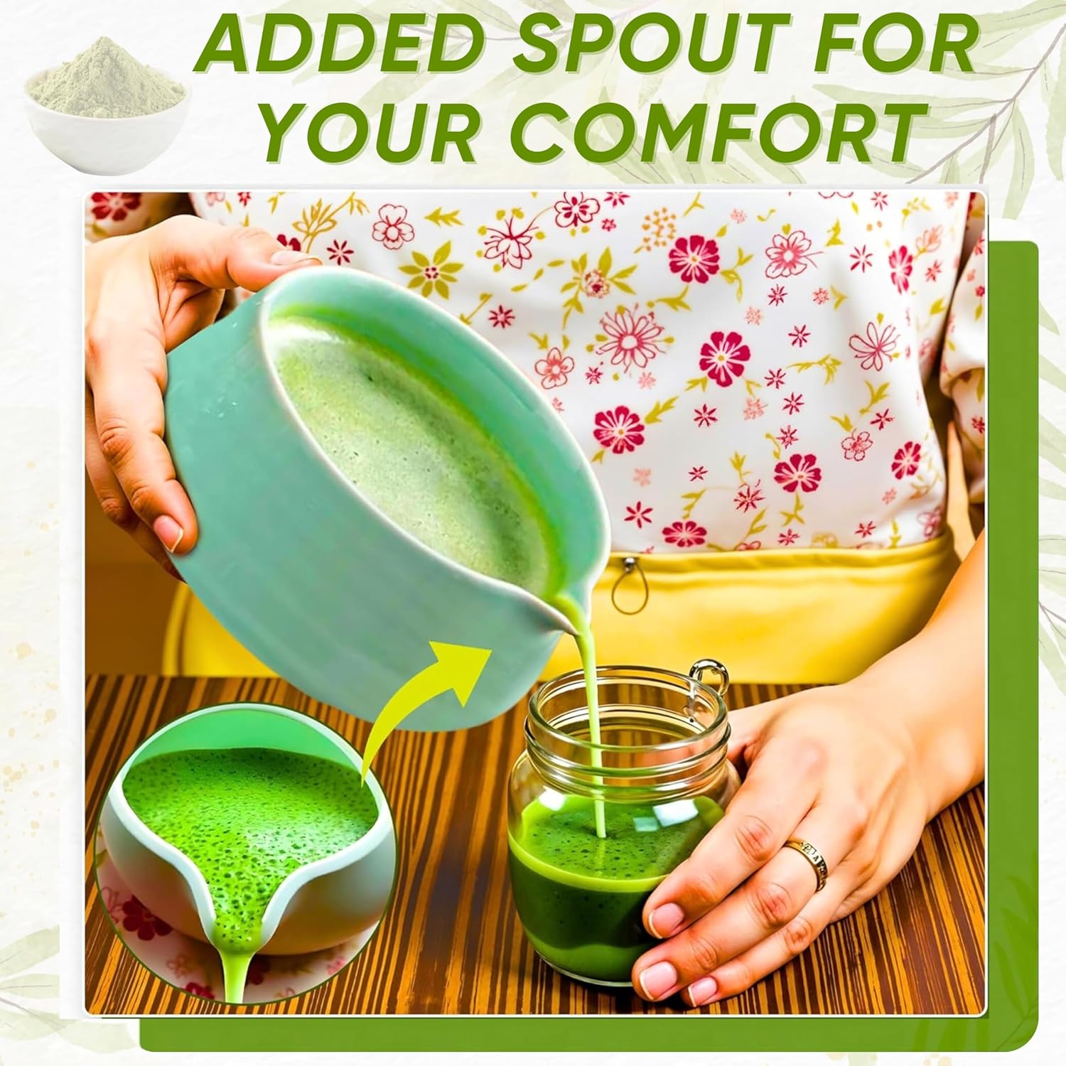 - FOCUSED ON YOUR COMFORT, EVERY DETAIL - The ceramic bowl with a spout, part of our macha whisk set, makes pouring effortless, reducing spills and enhancing your tea-making experience. Enjoy a blend of functionality and elegance in your kitchen.